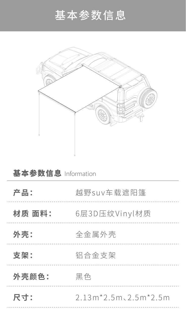오프로드 SUV 차량 루프탑 차양막, 캠핑용 측면 텐트, 접이식 차양막, 자동차 차양막