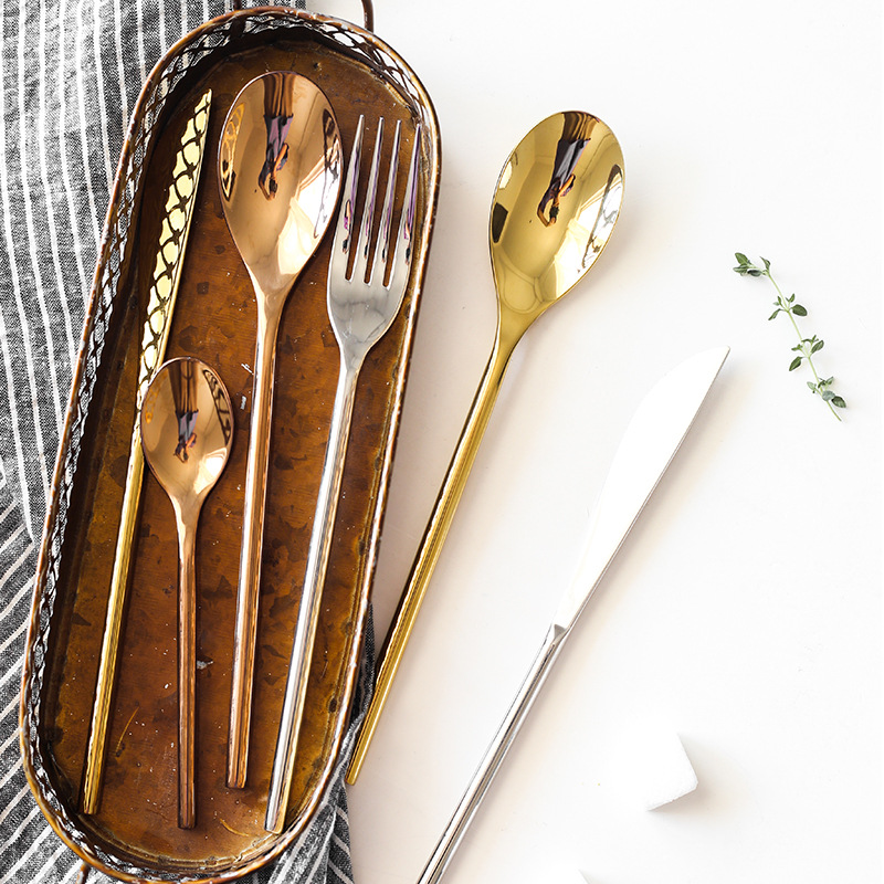 유럽 원통형 황금 주요 식사 칼 포크 스푼 차 스푼 호텔 레스토랑 도매 다양한 세트 일치 할 수 있습니다