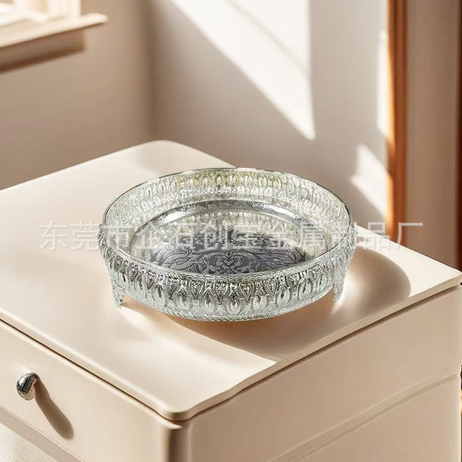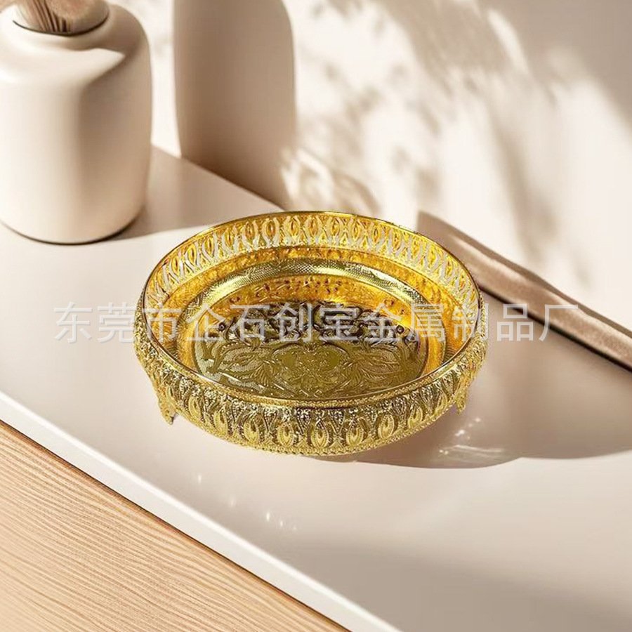 패션 라운드 서비스 트레이 식기 식품 컵 금속 트레이 호텔 가정 용품 다기능