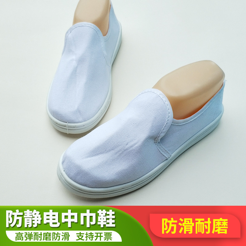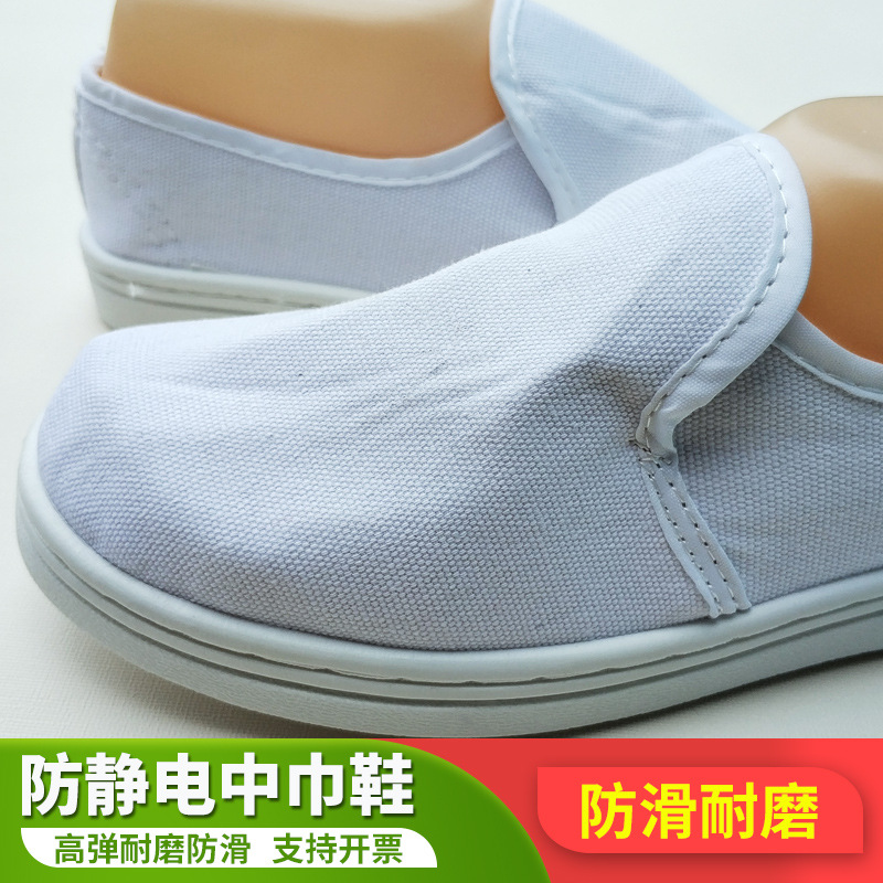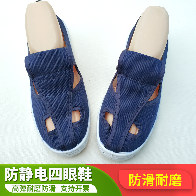 정전기 방지 캔버스 신발, 4구 안감 신발, 파란색과 흰색 먼지 없는 작업장 특수 미끄럼 방지 보호 캔버스 신발