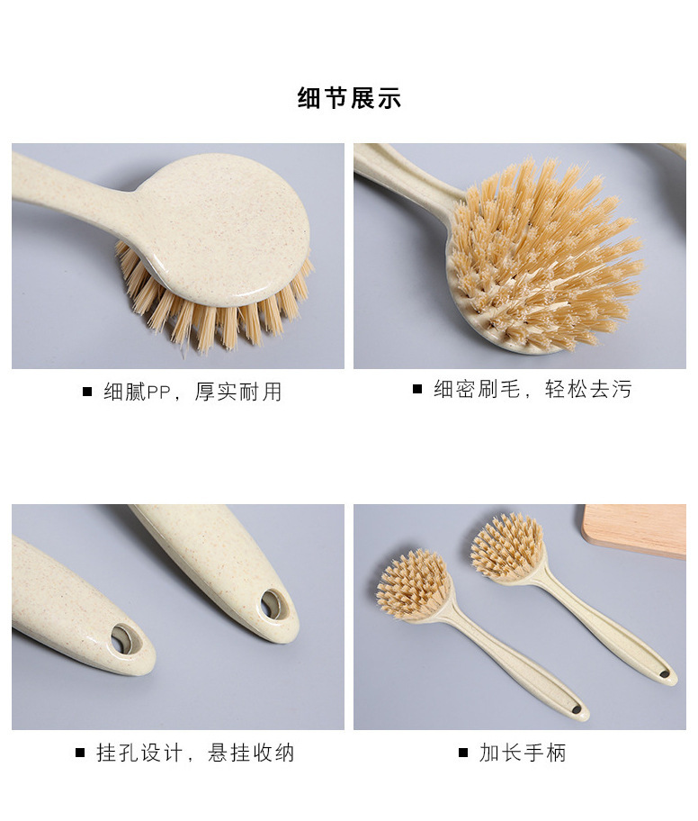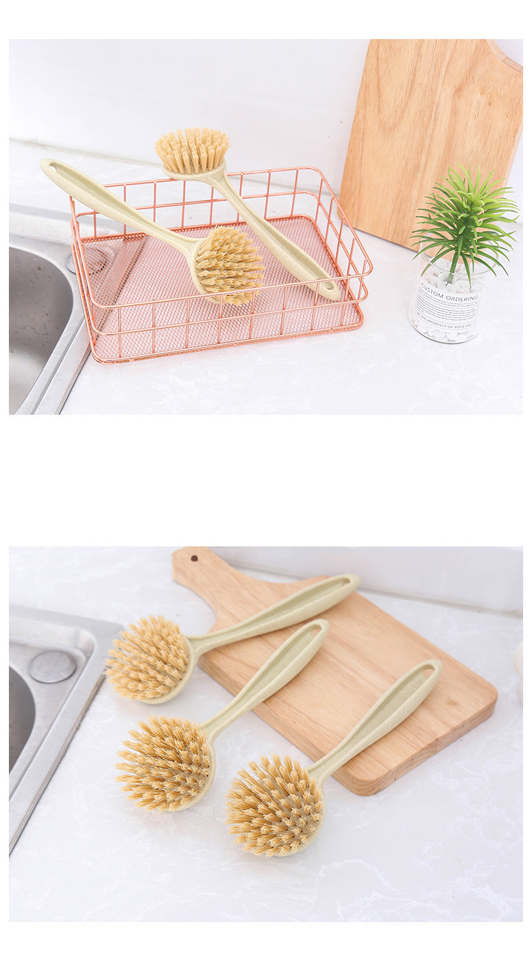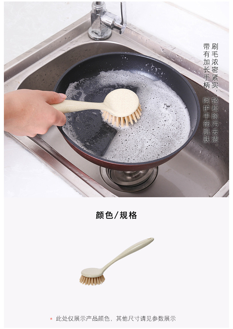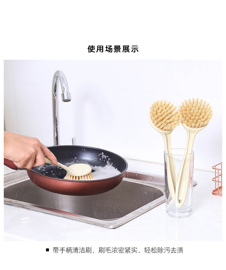 T2011 밀 밀짚 주방 오염 제거 긴 손잡이 세척 냄비 브러시 식기 세척 브러시 가정용 싱크대 스토브 청소 브러시