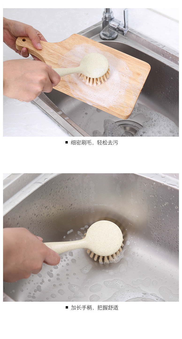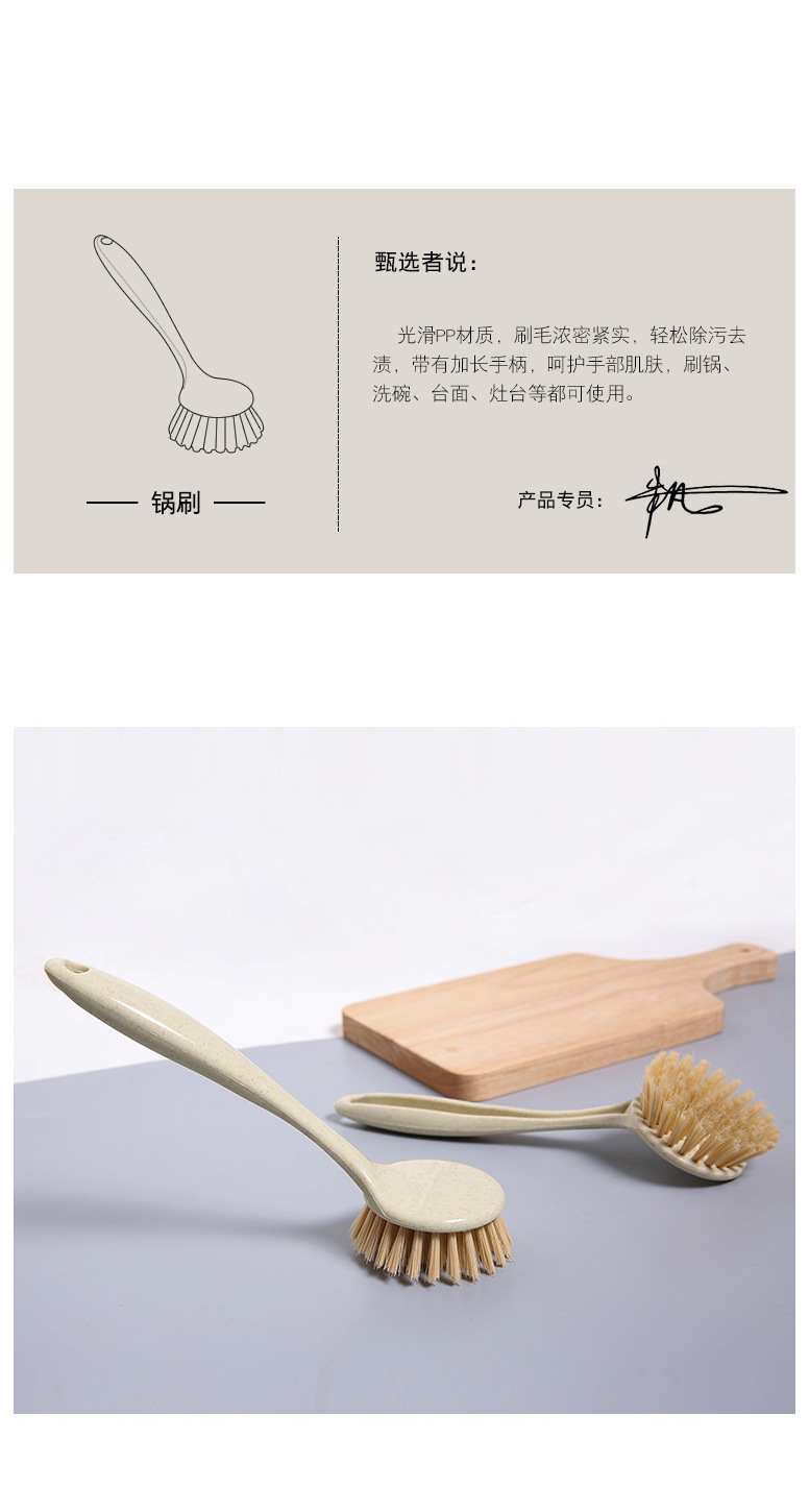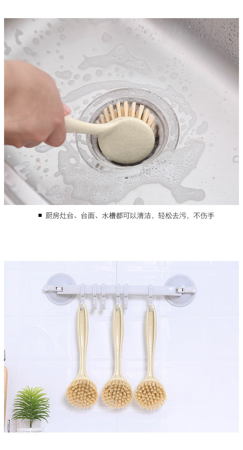 T2011 밀 밀짚 주방 오염 제거 긴 손잡이 세척 냄비 브러시 식기 세척 브러시 가정용 싱크대 스토브 청소 브러시