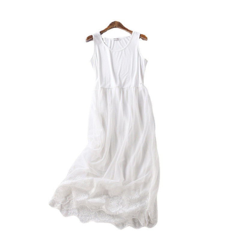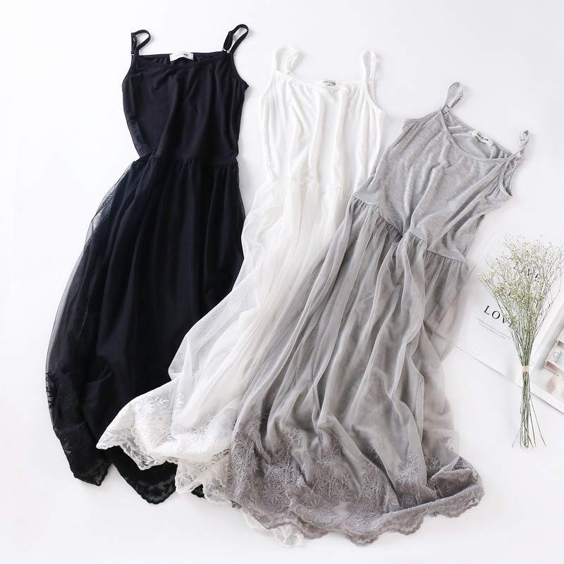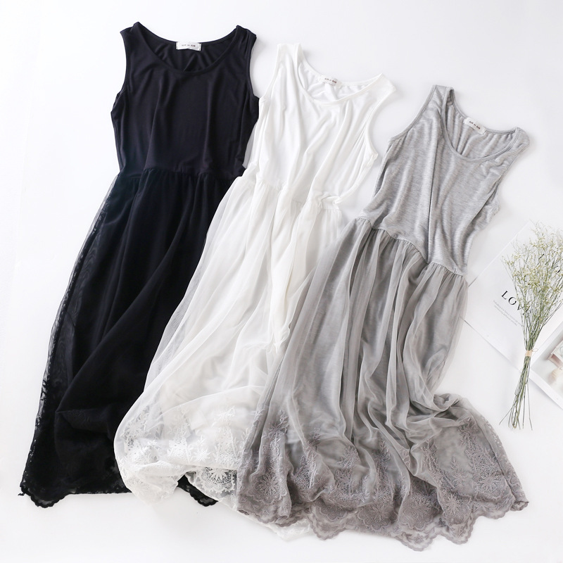 上身莫代尔 下边共2层,外层绣花蕾丝 里衬莫代尔,里衬是加长的