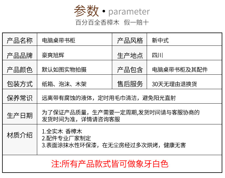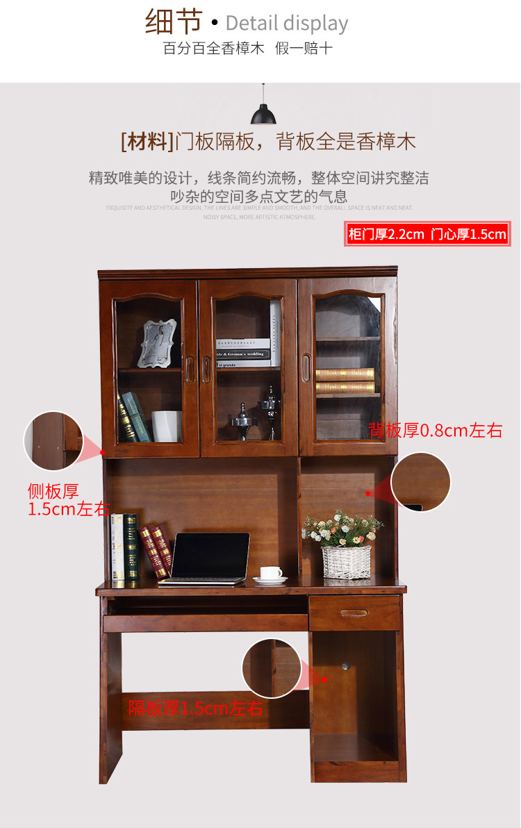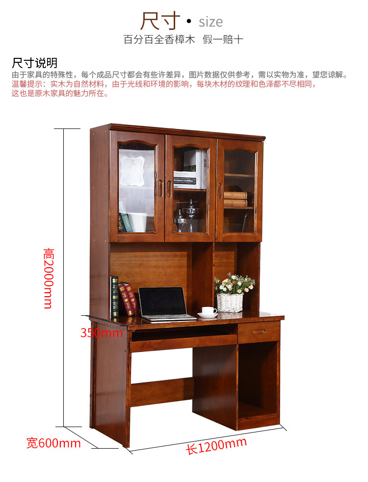 원목 조합형 사무용 데스크탑 컴퓨터 1.2m 책상 녹나무 침실 책장 책꽂이 방충 책장