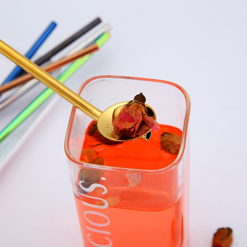 Zhanming 304 스테인레스 스틸 짚 음료 스푼 커피 차 필터 스푼 믹싱 스푼 바 빨대 제조 업체