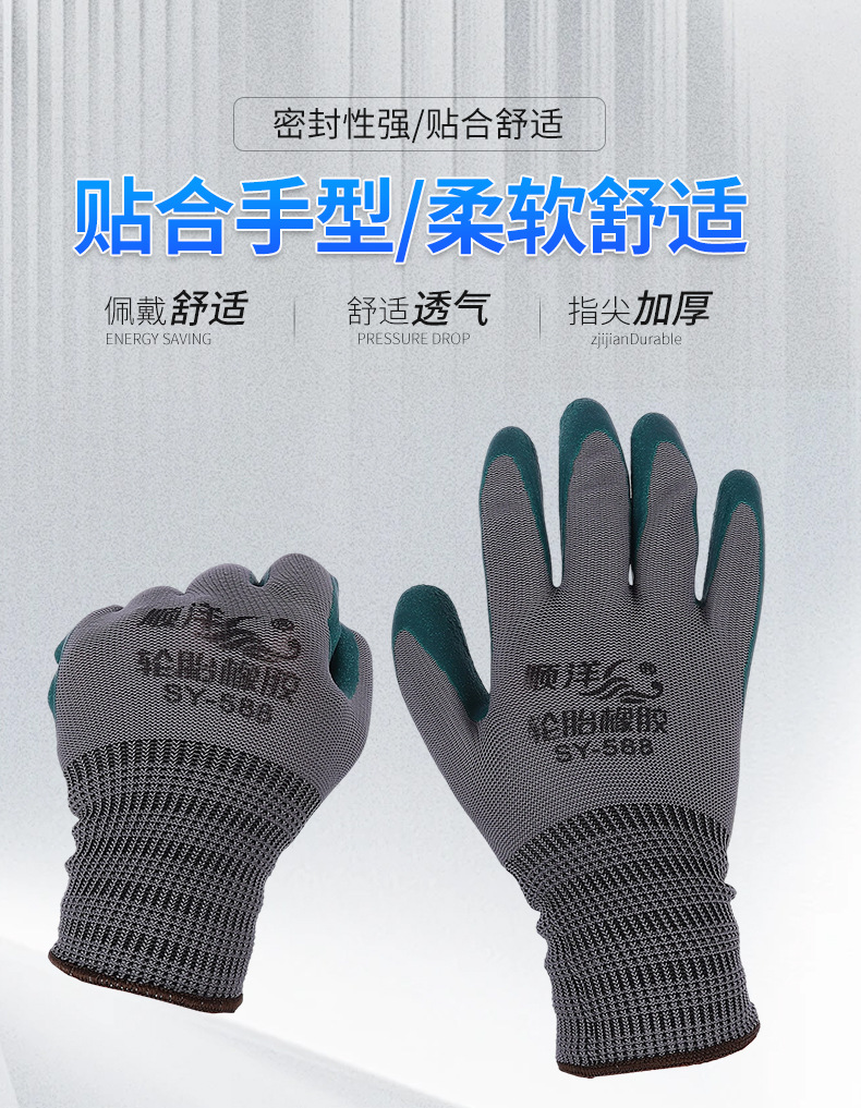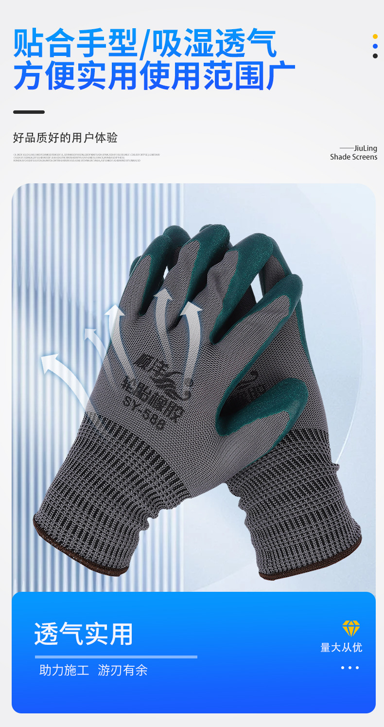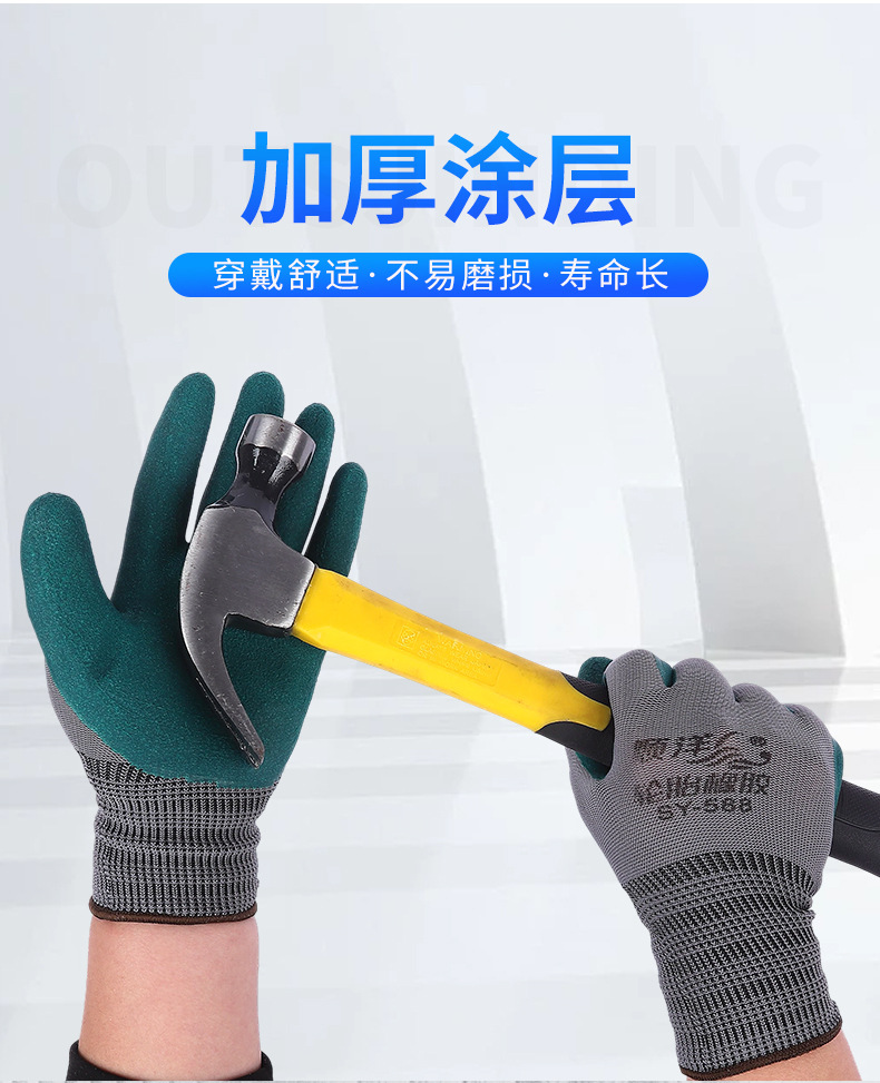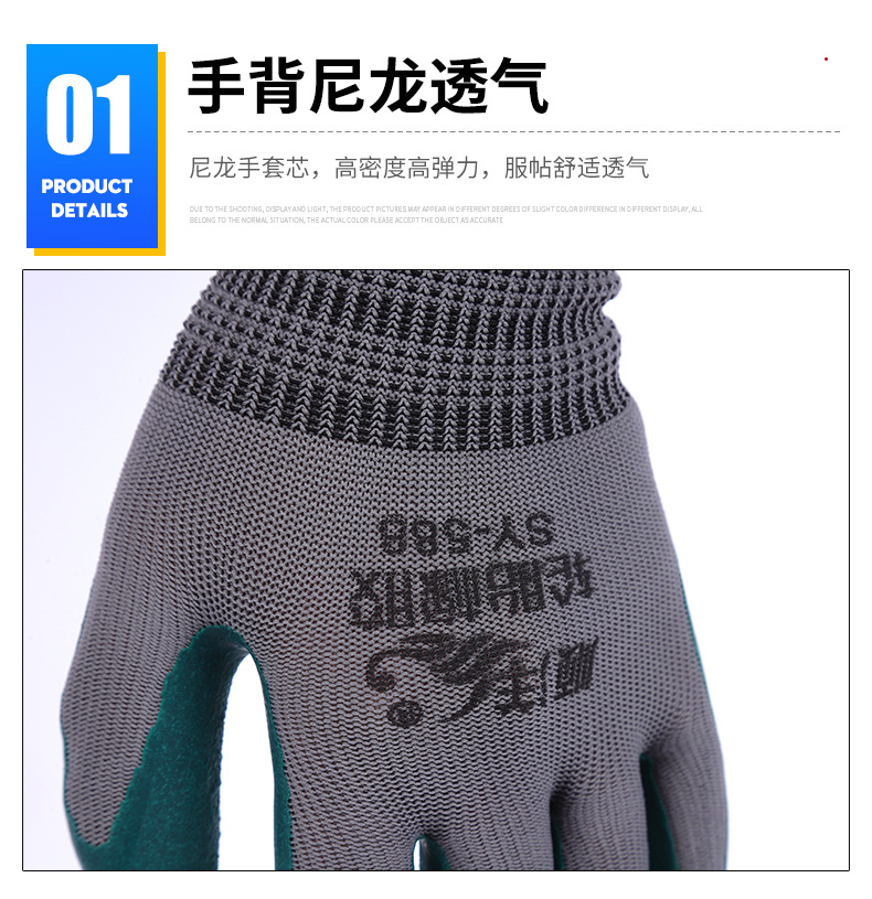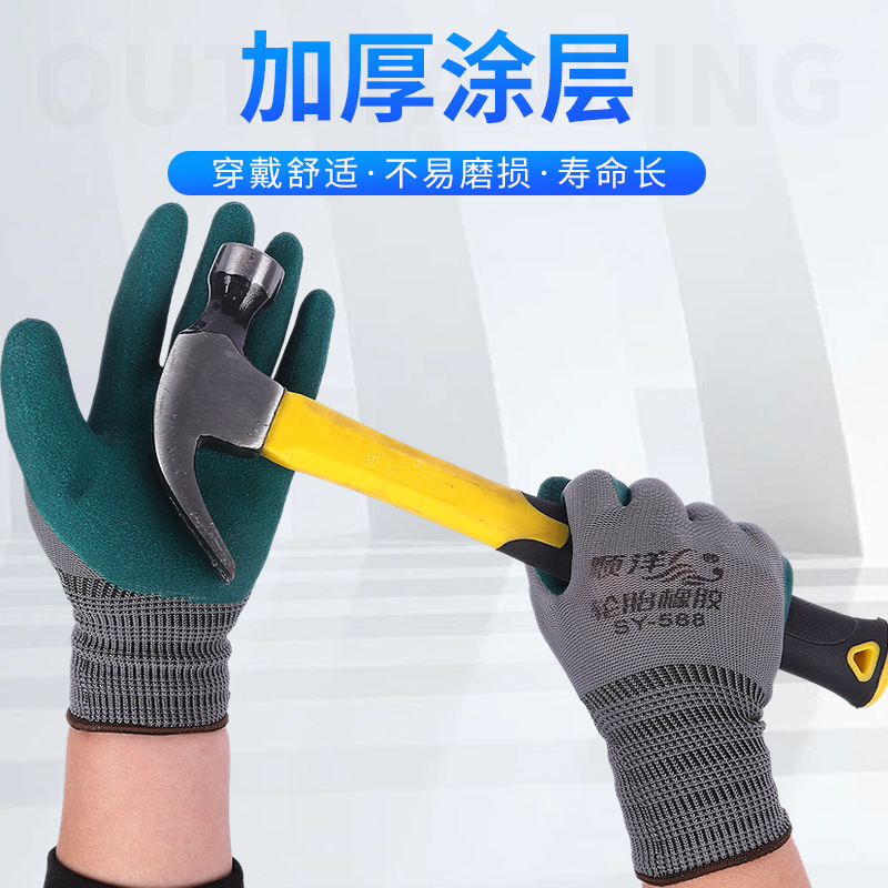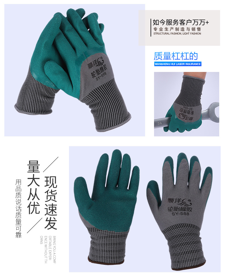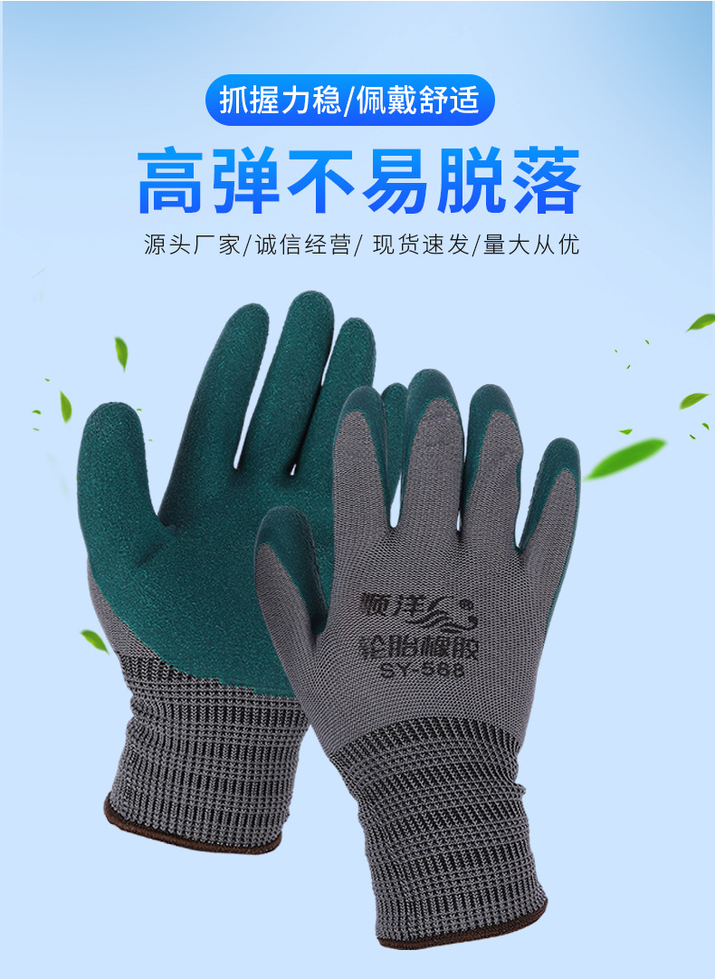 Tiansheng 고무 노동 보호 장갑 강한 연삭 부드러운 미끄럼 방지 절단 방지 13 바늘 폼 장갑 내구성