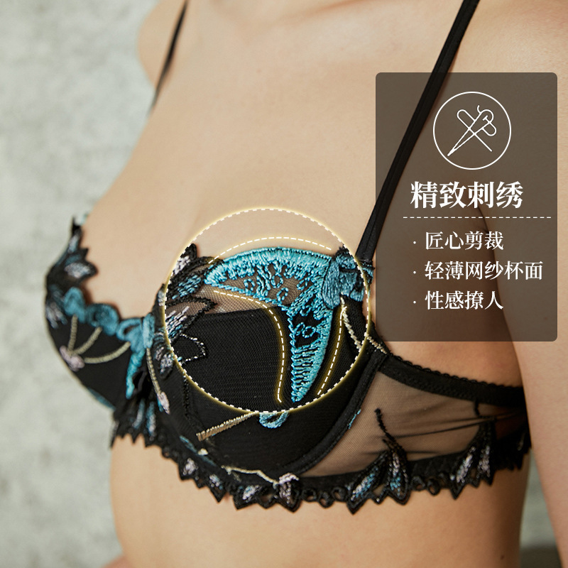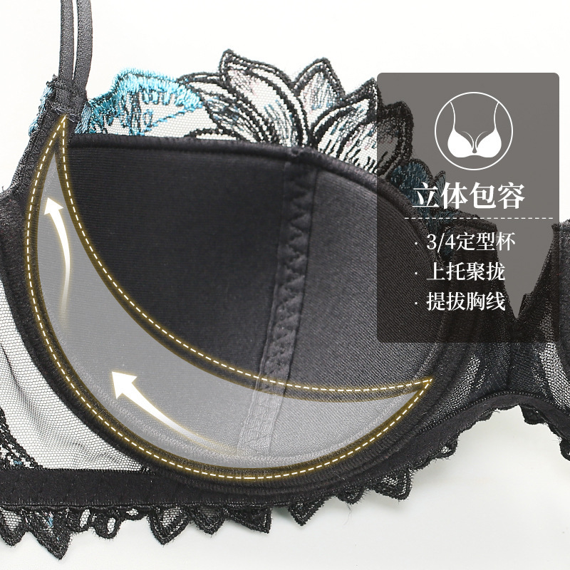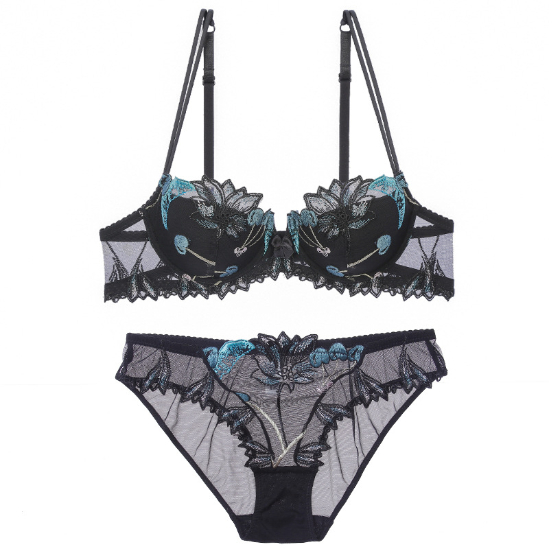 대외 무역 섹시한 여성 브래지어 브리프 세트 조정 가능한 어깨 스트랩 메쉬 투명 자수 브래지어 면 AP9002