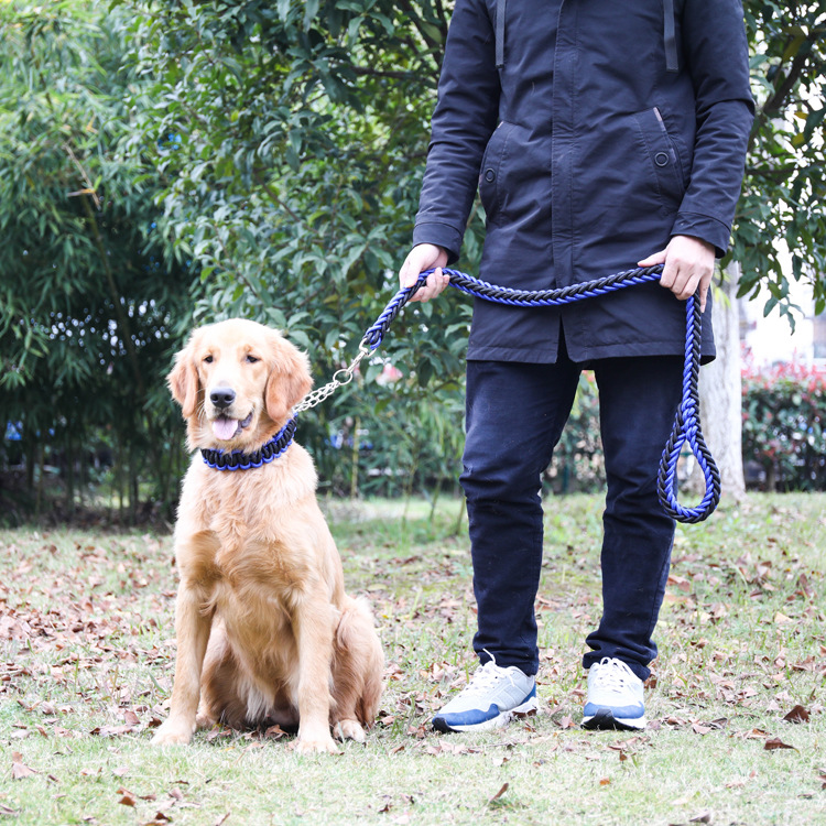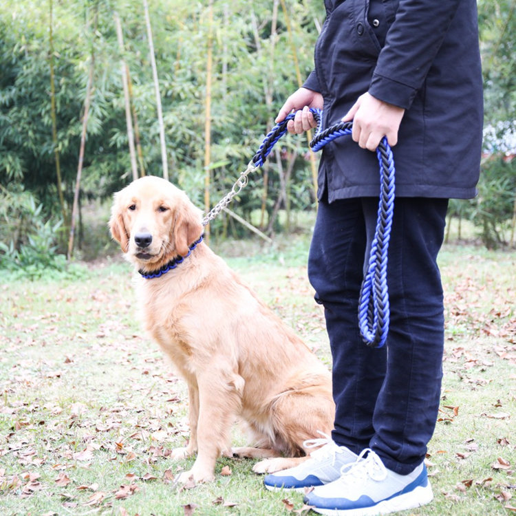 나일론 8 가닥 개 체인 2 색 직조 칼라 견인 로프 중형 및 대형 개 골든 리트리버 개 로프 P 체인 공장 콘센트