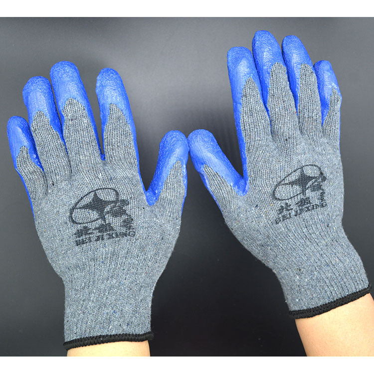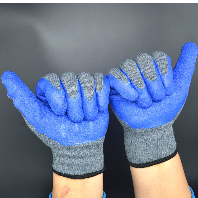 产品名称 :棉纱浸胶手套 10针粗灰纱线乳胶起皱纹手套 挂胶线胶手套