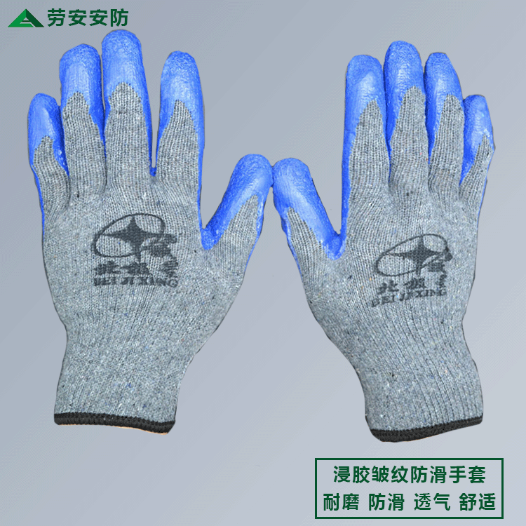 北极星防滑耐磨带胶涂胶皱纹手套工业挂胶乳胶浸胶防油玻璃厂手套