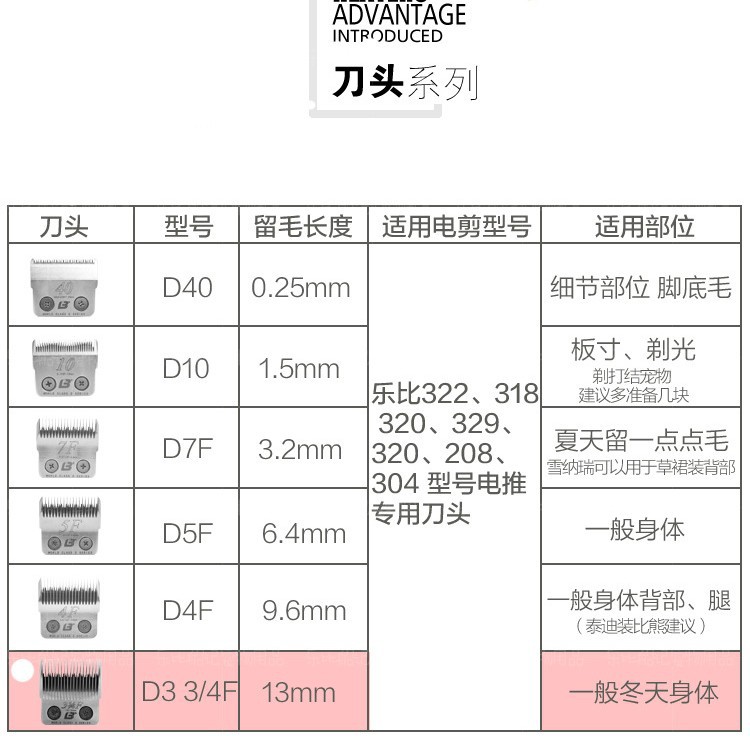 오리지널 Leby D 시리즈 애완동물 전기 깎기 면도기 헤드 5F/4F/7F