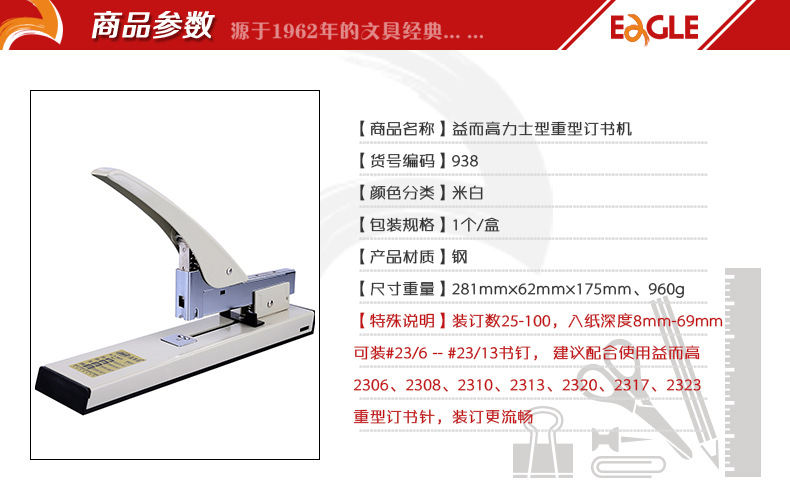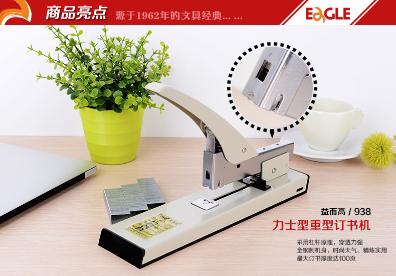 益而高文具大号省力订书器 办公财务档案专用厚层100页重型订书机