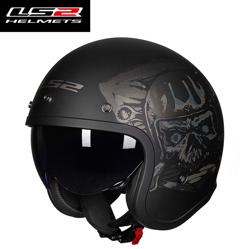 LS2 오토바이 헬멧 남성용 및 여성용 전기 오토바이 프린스 할리 하프 헬멧 커버 복고풍 맞춤형 사계절 여름 겨울