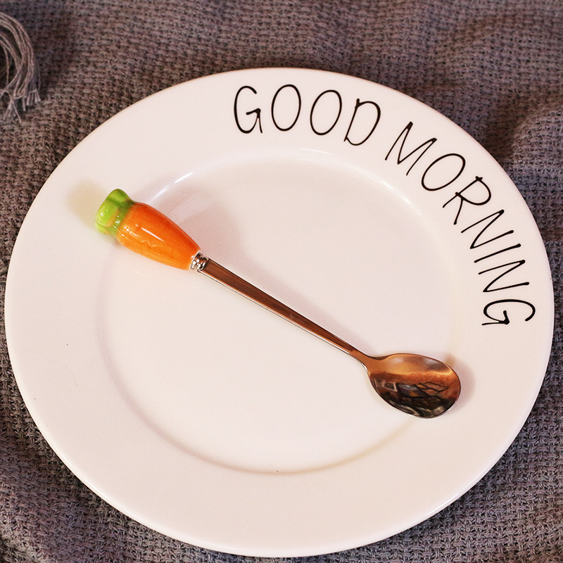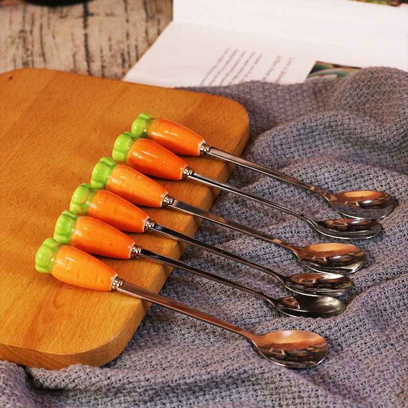 맞춤형 세라믹 손잡이 스테인레스 무 스푼 커피 한국식 스푼 디저트 스푼 어린이 식기 긴 손잡이 스푼