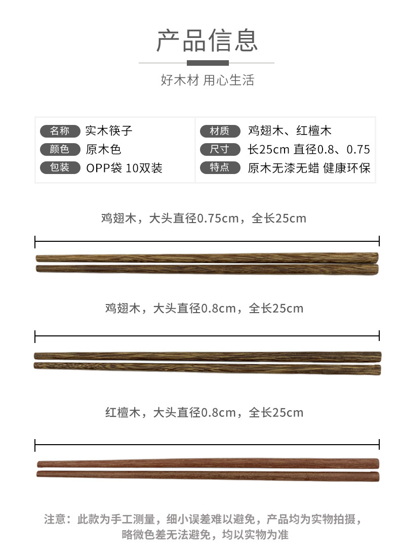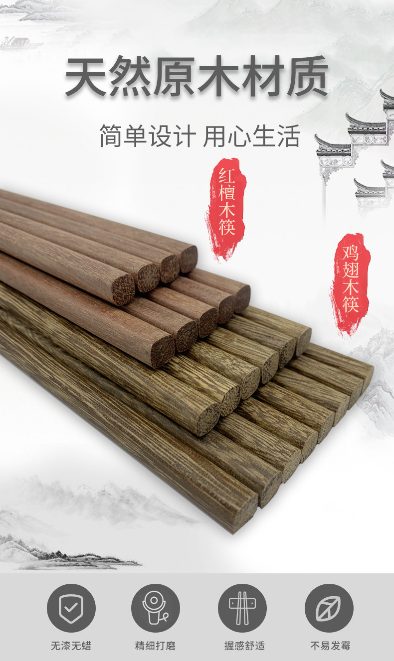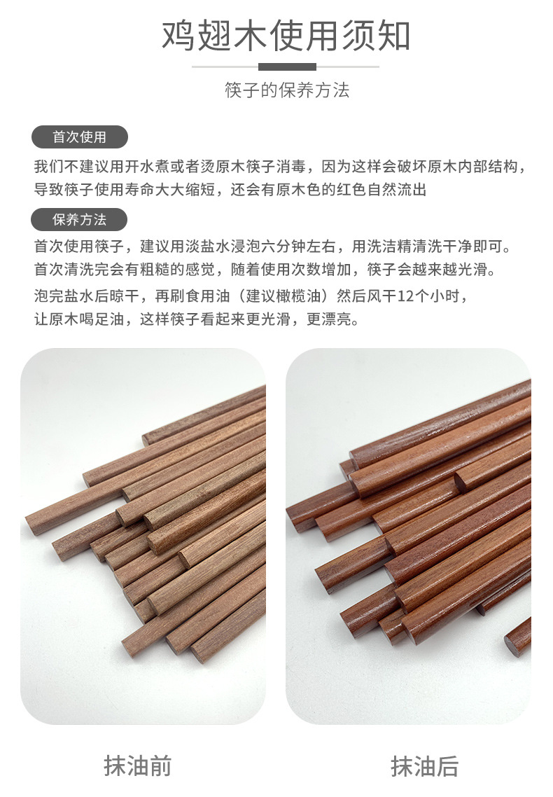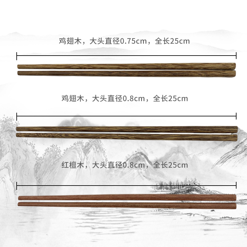 닭 날개 나무 젓가락 도매 페인트 없음 왁스 없음 레드 백단향 젓가락 가정용 단단한 나무 중국 젓가락 호텔 식기 10 쌍 팩