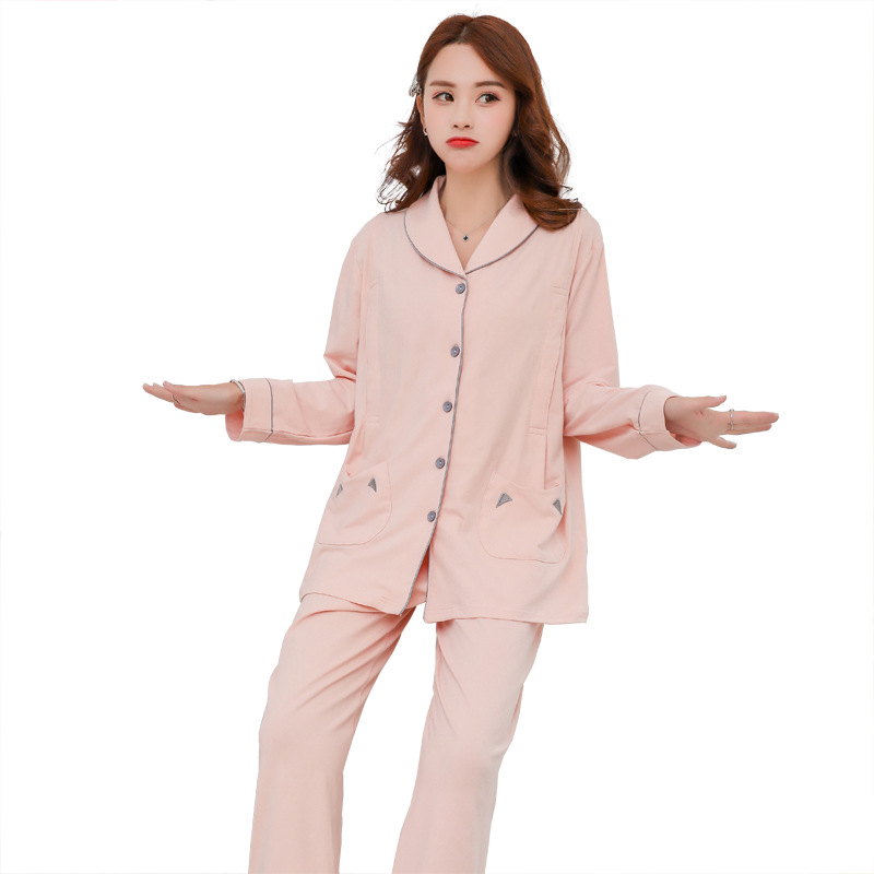 새로운 산후 간호 잠옷 임신 면 라이크라 면 임산부 긴 소매 세트 달 의류 도매