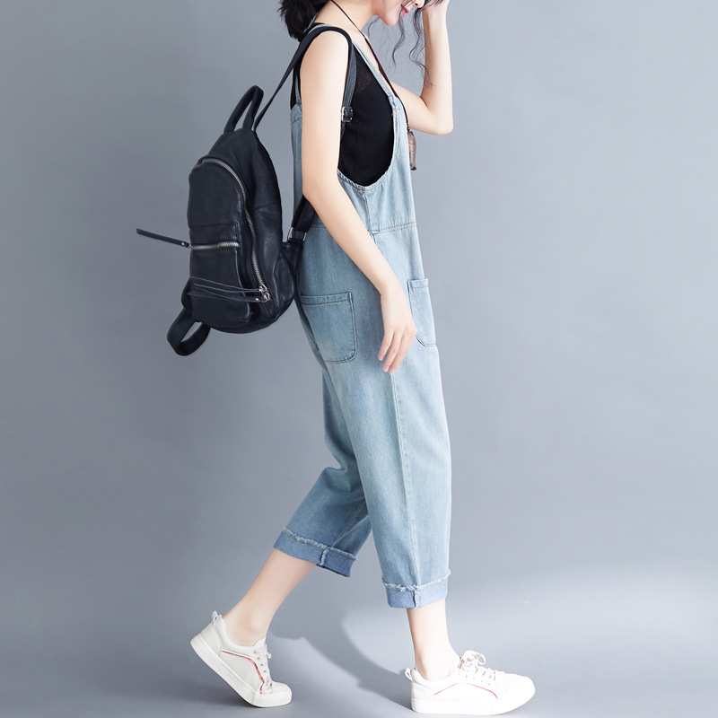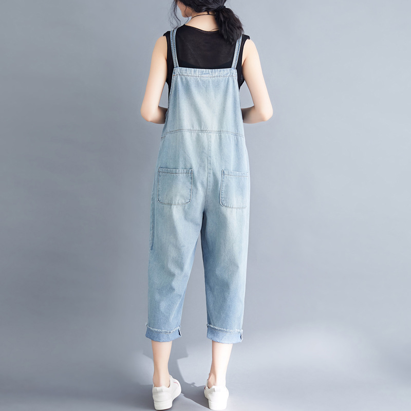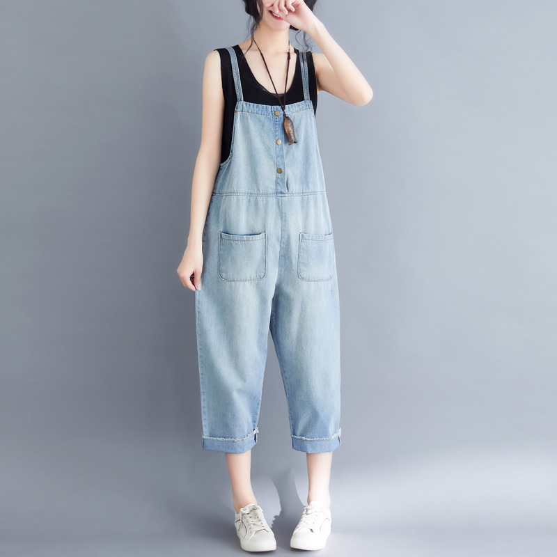 2024 여름 스트랩 청바지 여성 여름 한국 스타일 대형 연령 감소 슬링 원피스 자른 바지 여성 청바지