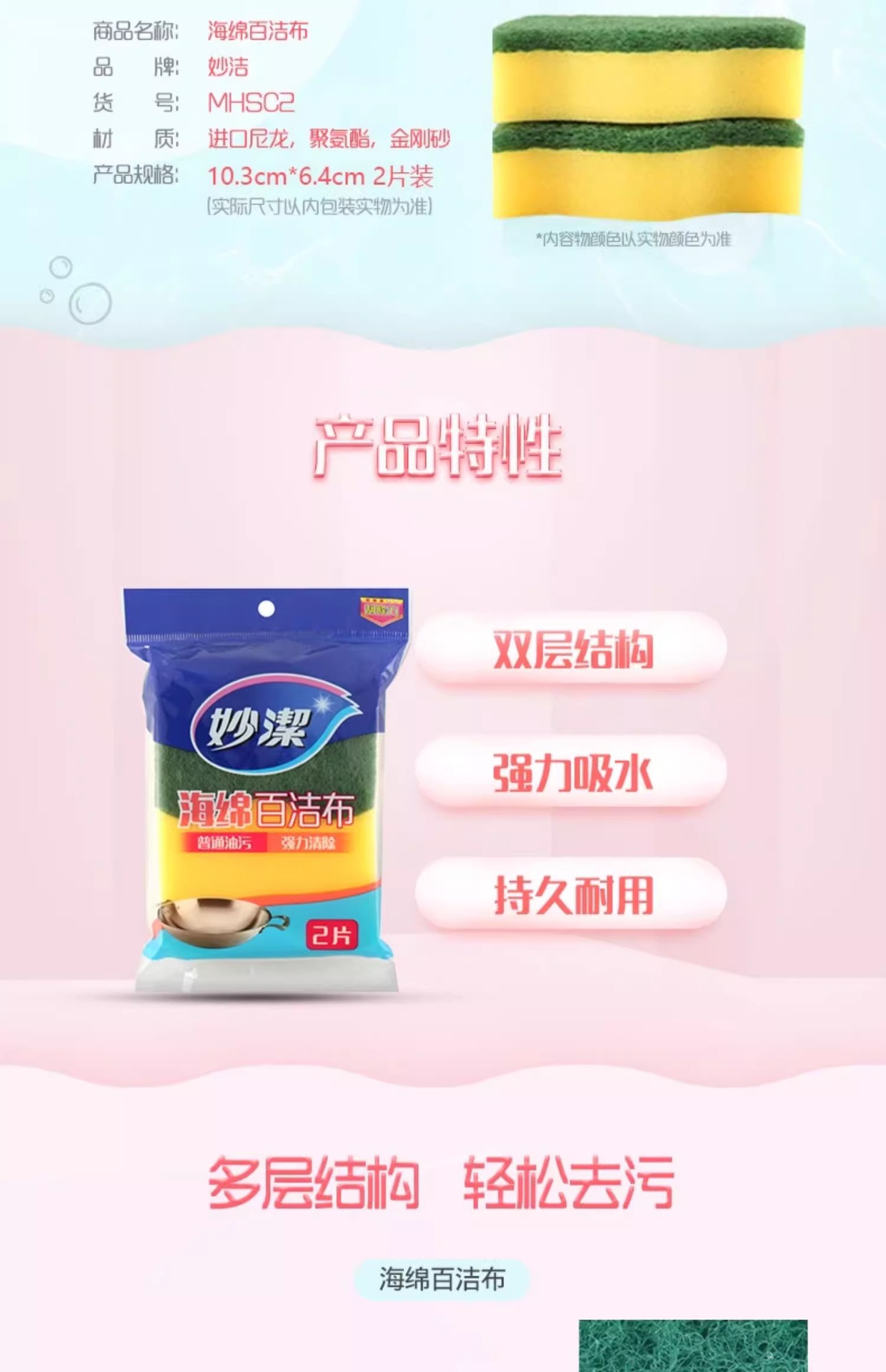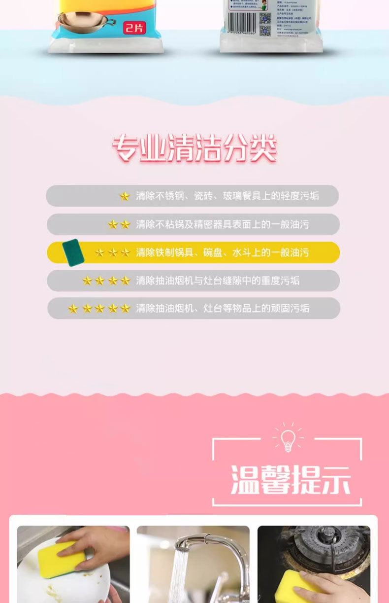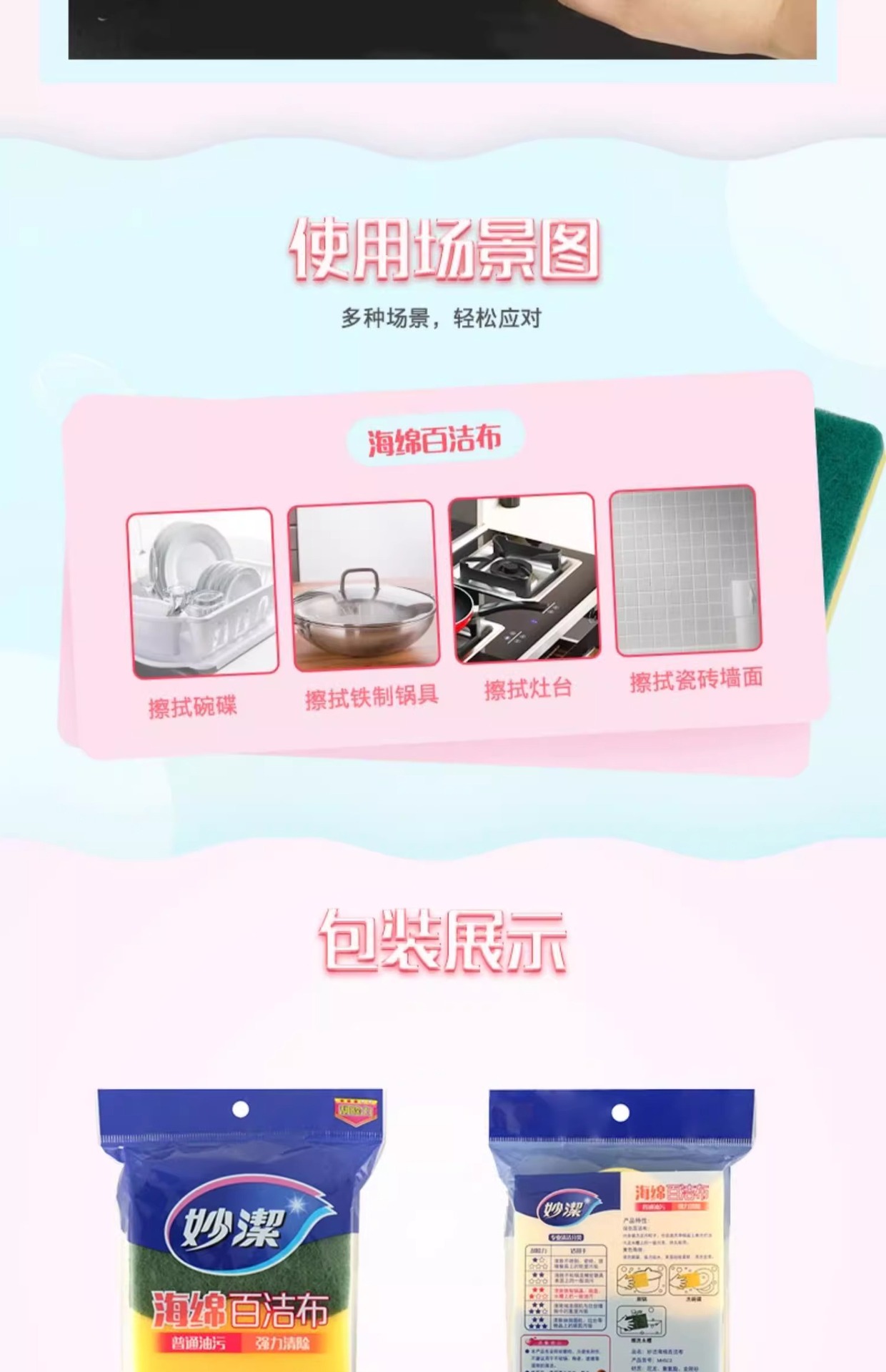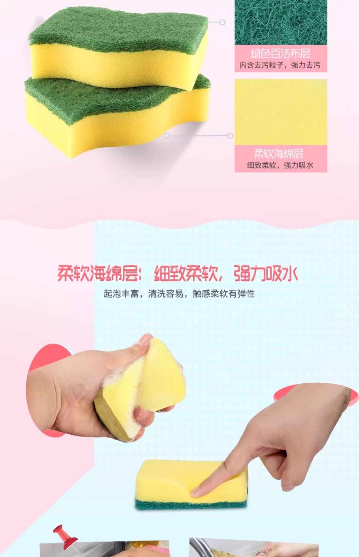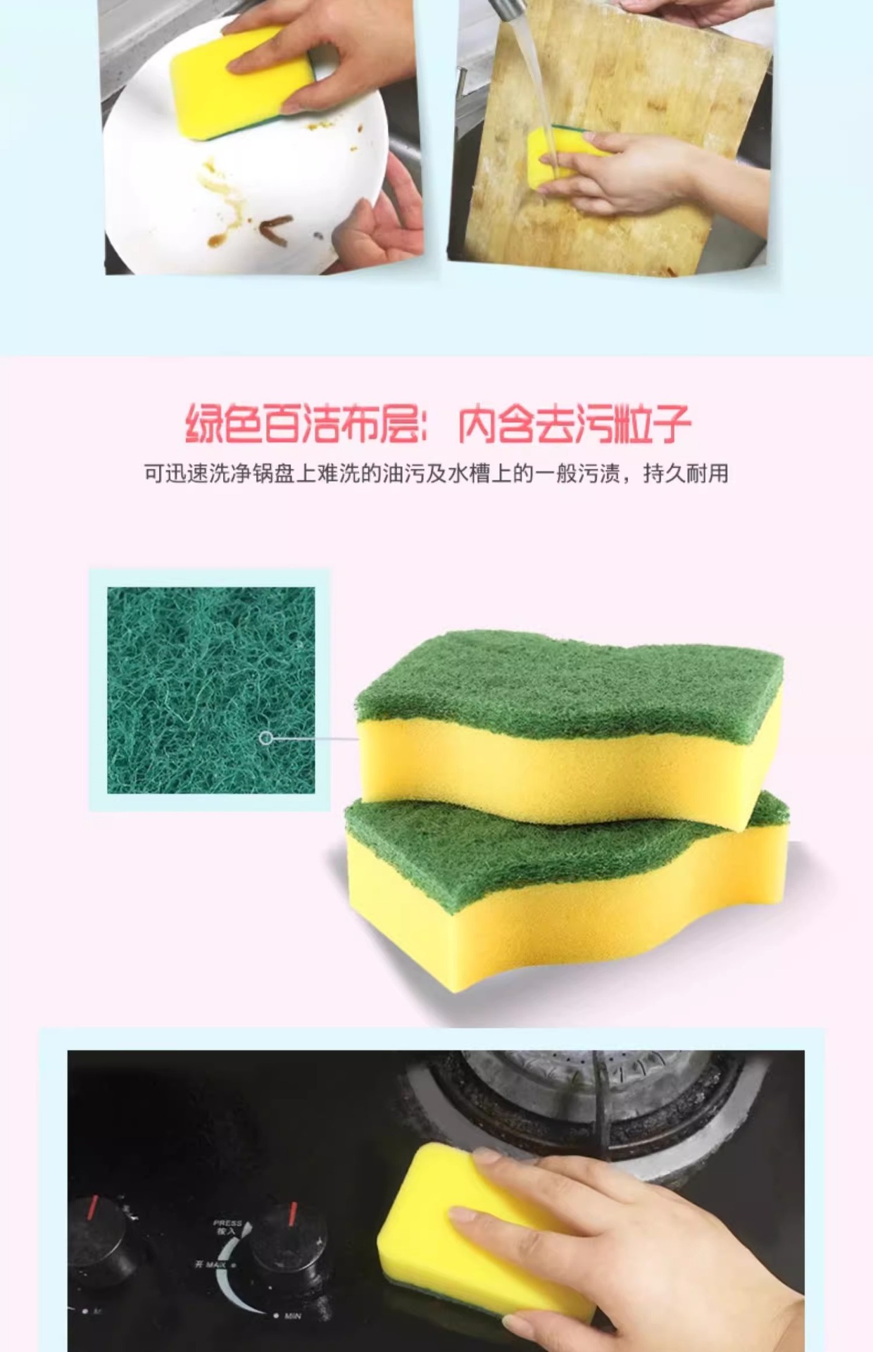 Miaojie 스폰지 수색 패드 탈지 수건 다기능 주방 가정용 식기 세척 천 비 스틱 오일 스폰지 닦아 2 개