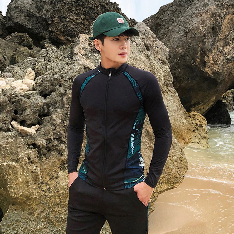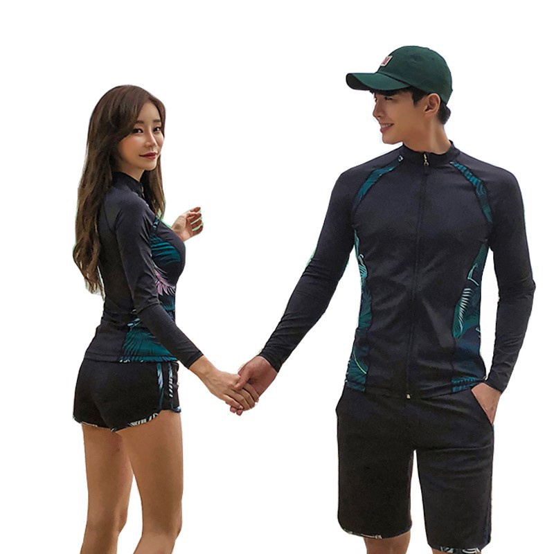 2019 New 여성용 긴팔 복서 쓰리피스 세트 남성용 긴팔 비치 팬츠 투피스 세트 커플을 위한 속건 편안한 수영복
