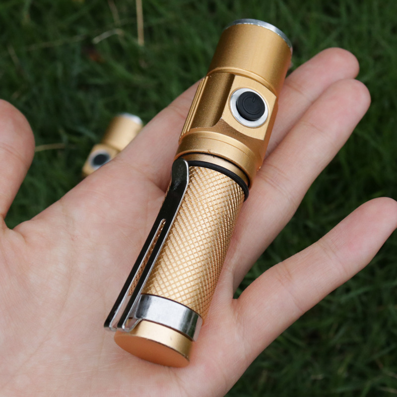 迷你定焦直充手电筒,有18650款与14500款两种,14500款体积小一点,筒身铝壳比18650款厚一点,因此14500款体积小,但重量比18650款重一些。
