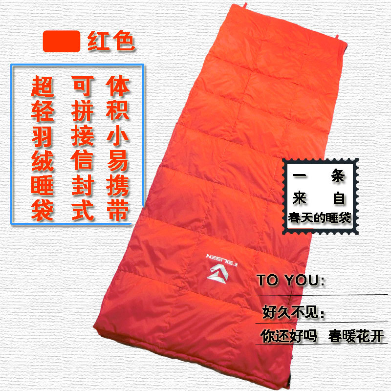 一是优质白鸭绒100%填充,二是内层放风口人性化可折叠魔术贴设计,三是外层魔术贴由不伤皮肤的优质材料制成,再也不用担心它会伤了你的脸或手哦,四是缩口的拉绳设计,更保暖,五是睡袋上方处设计备用口袋,可放置手机的贵重物品