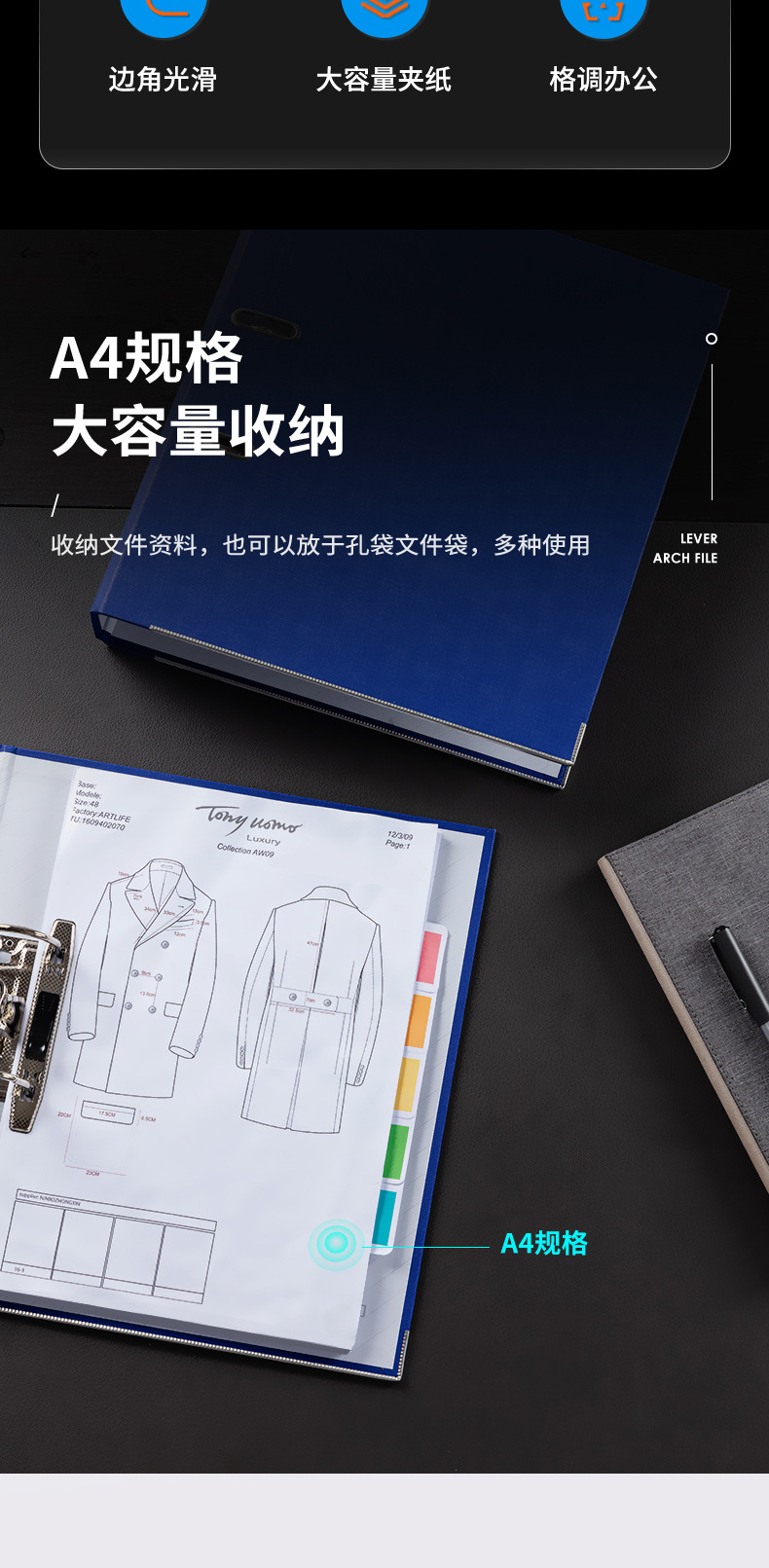 델리 빠른 작업 폴더 5481 펀치 바인더 3 인치 2 홀 2 홀 파일 폴더 빠른 작업 폴더 두꺼운 사무실 사용