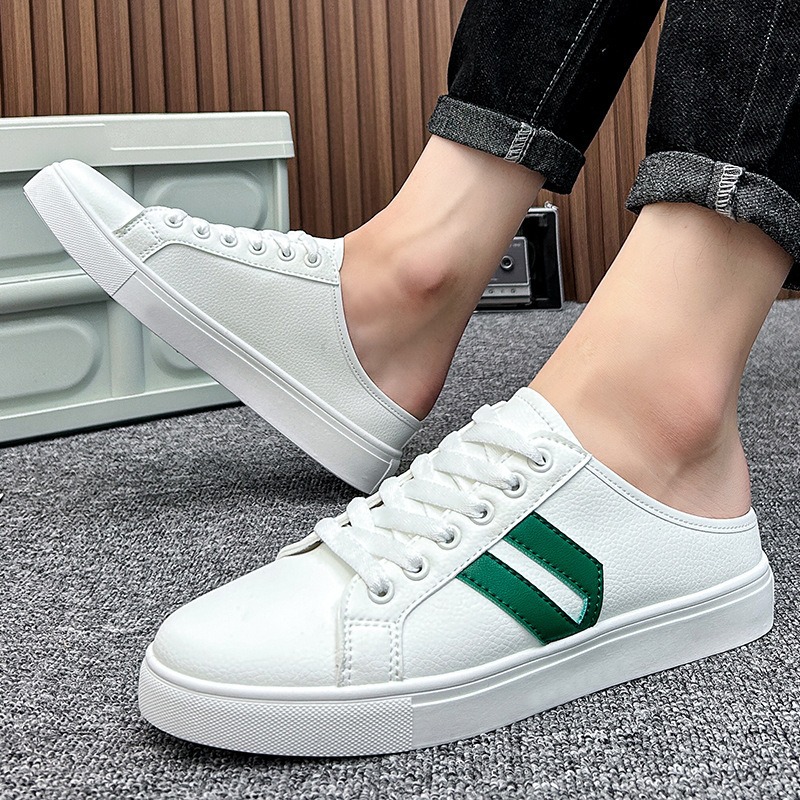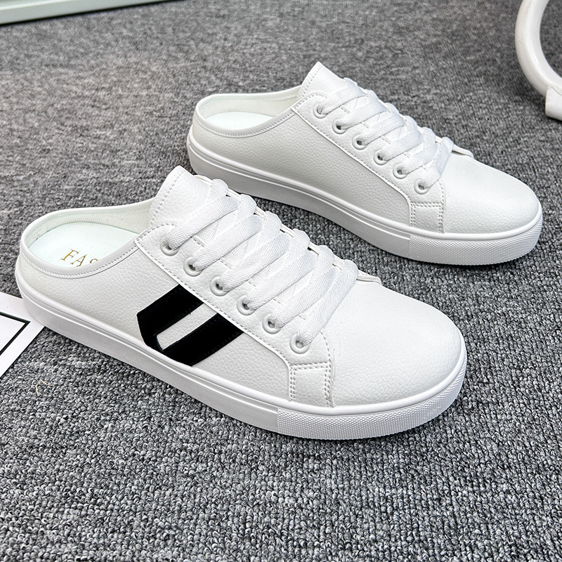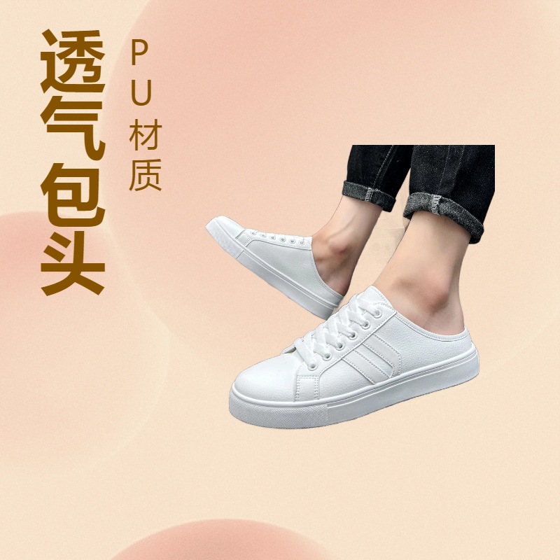 2025 여름 캔버스 신발 남성 슬립 온 슬립 온 신발 남성 캐주얼 화이트 신발 다목적 하프 슬리퍼 남성용 트렌디 신발