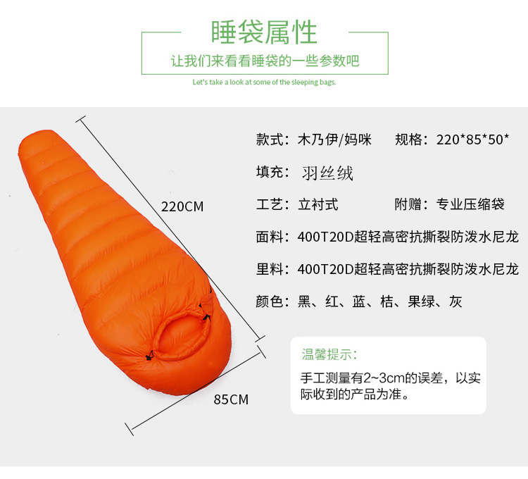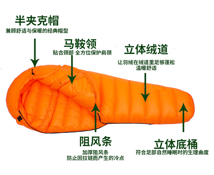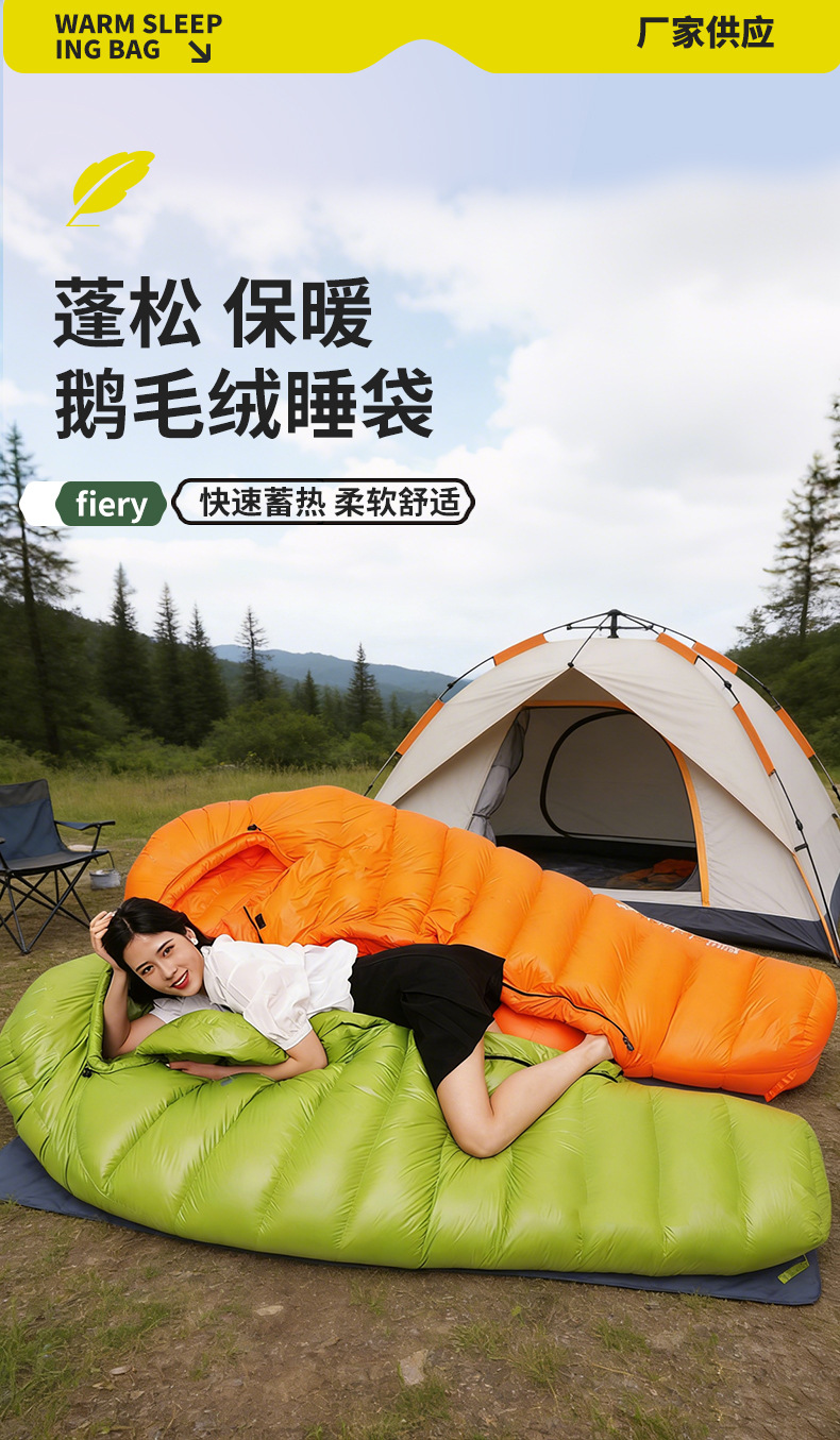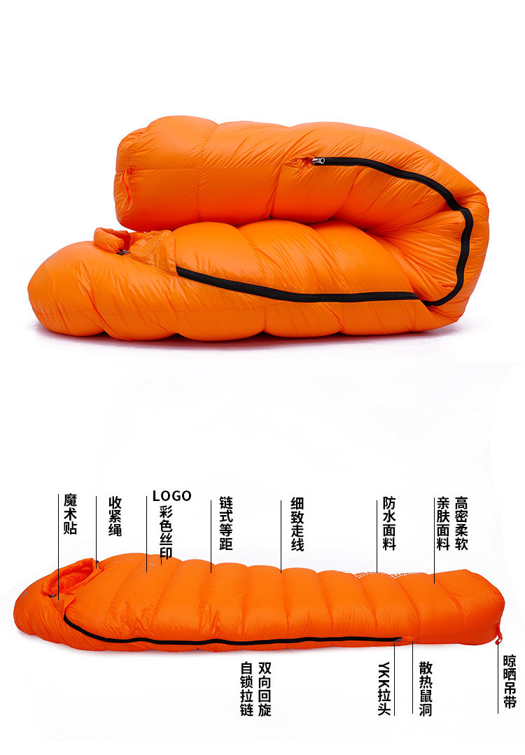 20D 거위털 침낭, 겨울철 성인용 야외 영하 캠핑용, 고탄력, 방한, 보온, 두꺼운 침낭 제조업체