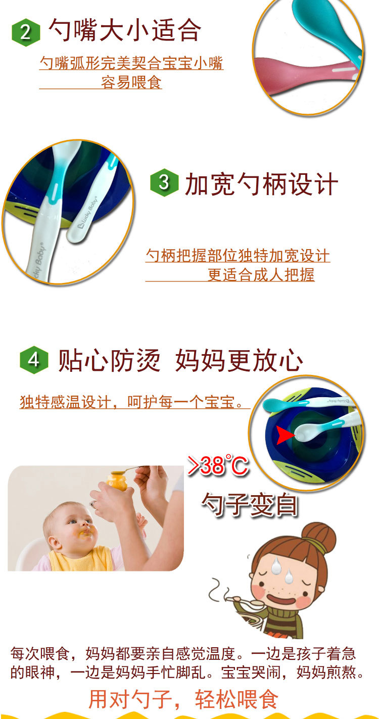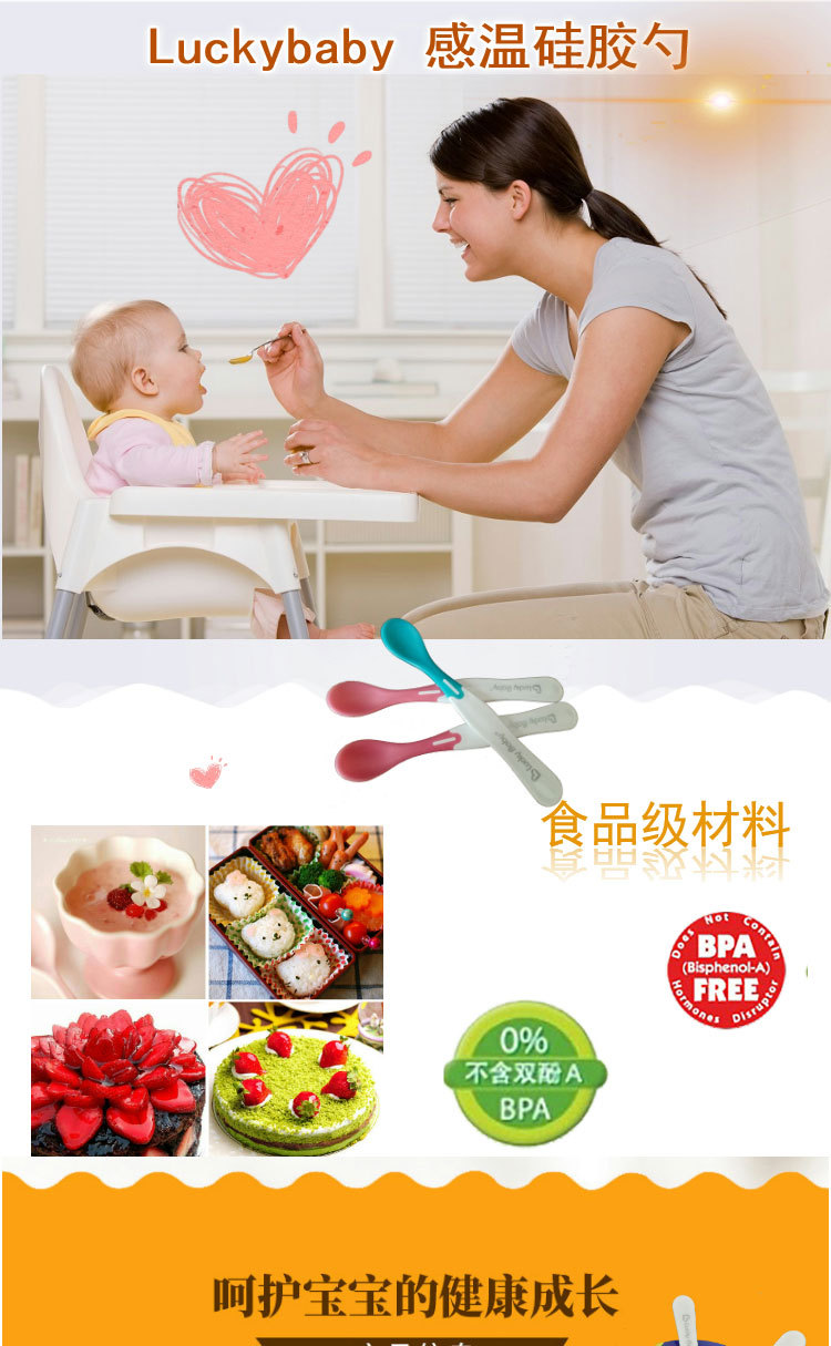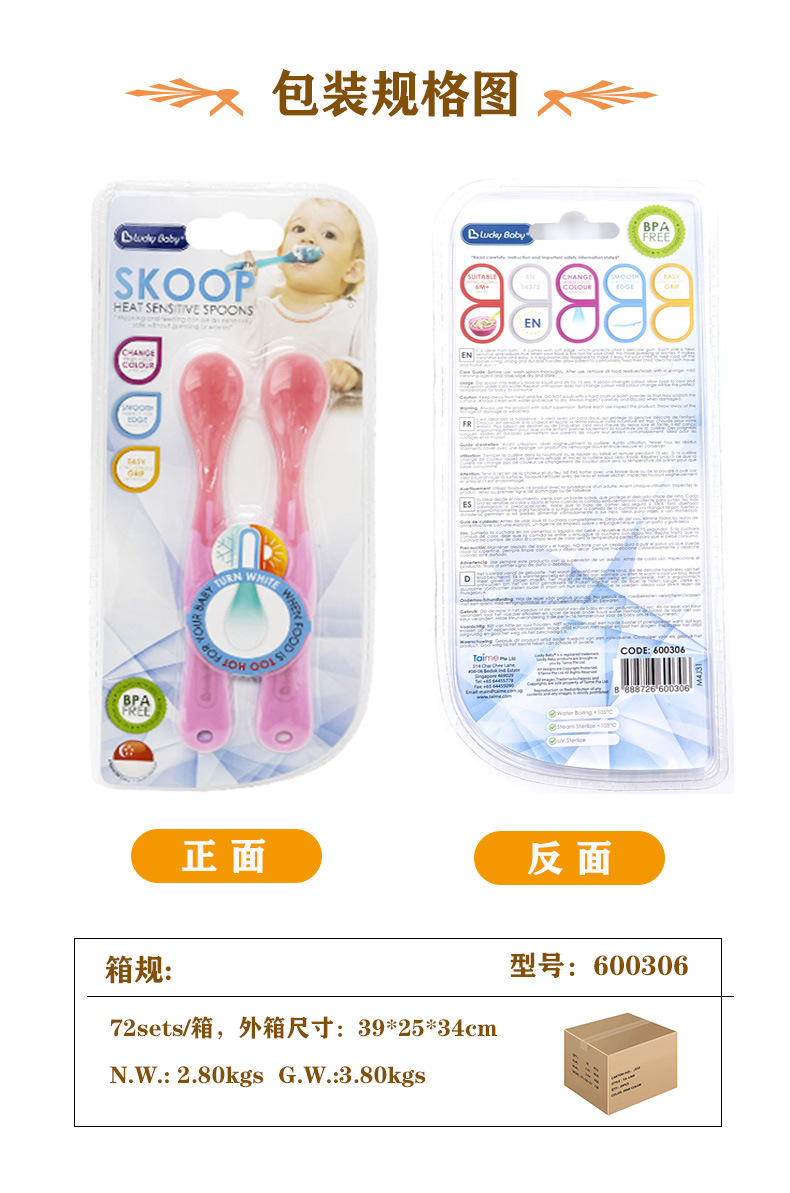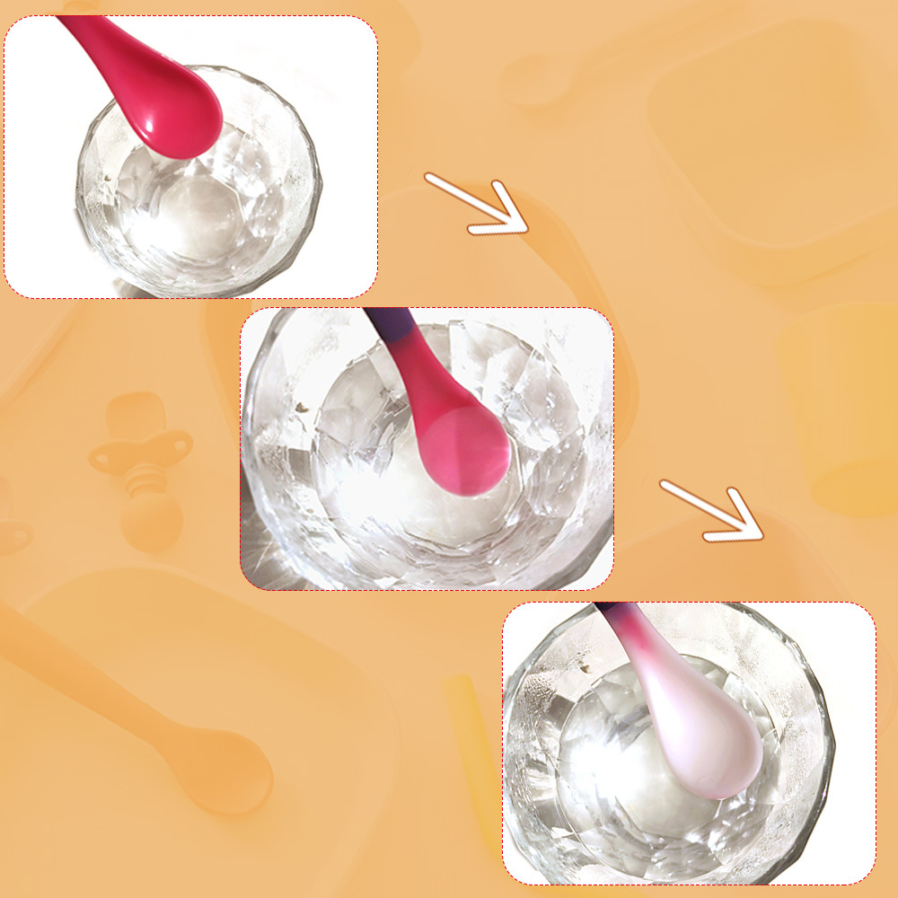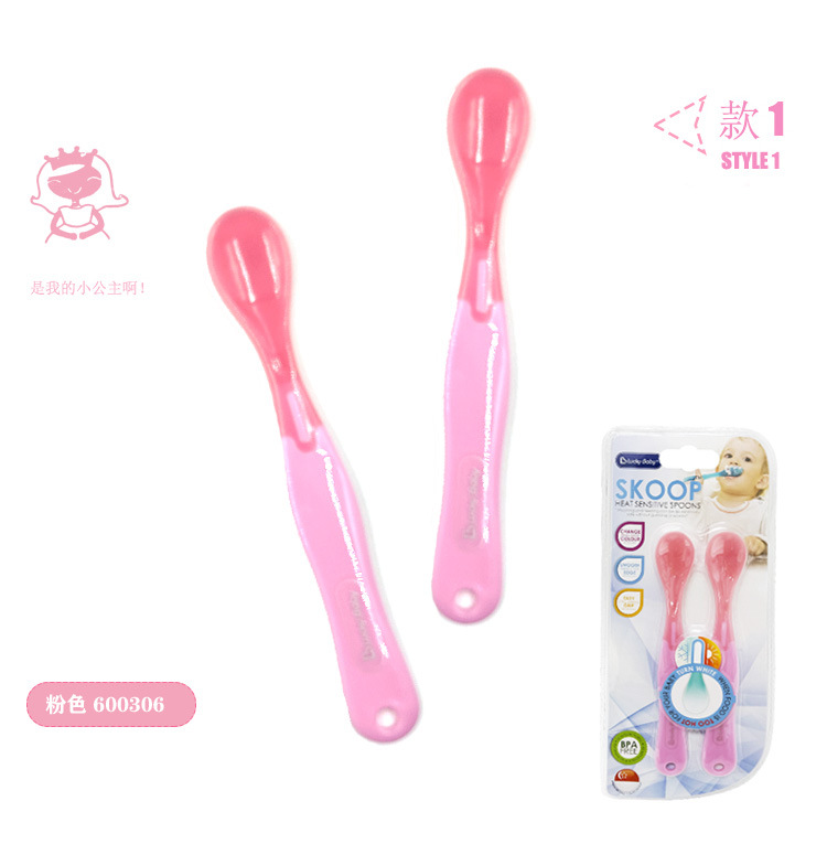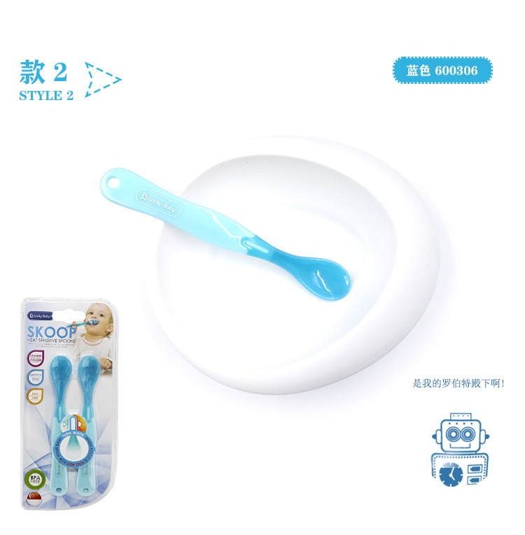 럭키베이비 어린이용 식품보조식품 온도감지 스푼, 아기 색상변화 물/밥 수유용 소프트팁 스푼, 유아용 PP 식기 2개