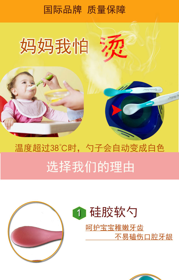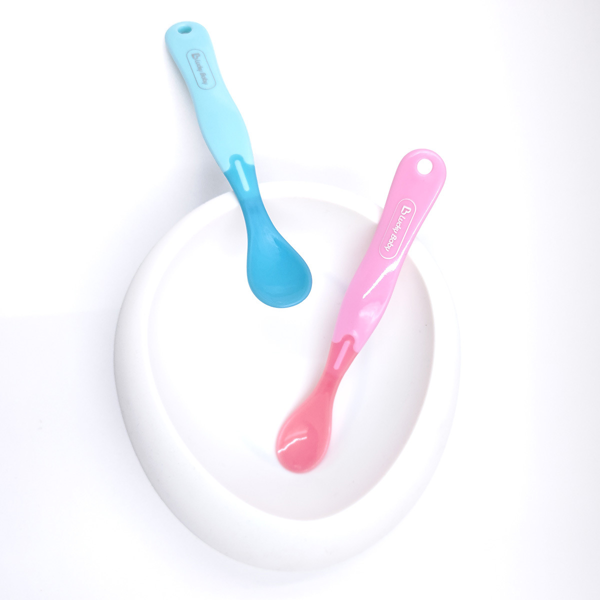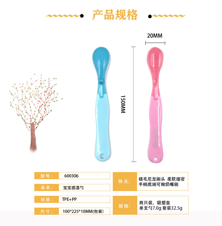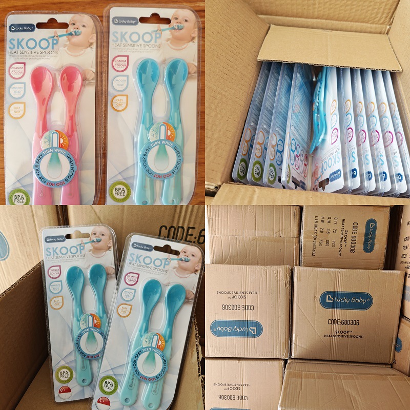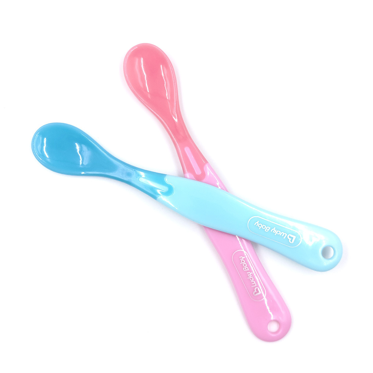 럭키베이비 어린이용 식품보조식품 온도감지 스푼, 아기 색상변화 물/밥 수유용 소프트팁 스푼, 유아용 PP 식기 2개