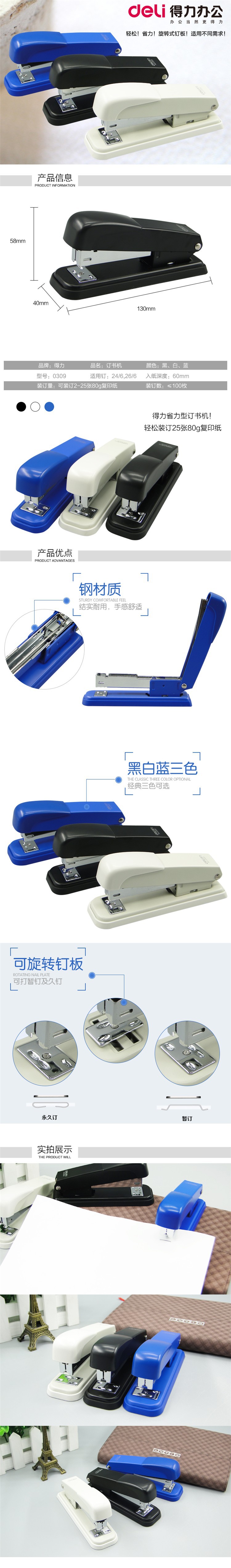 Deli 0309 스테이플러 사무용 스테이플러 스테이플러 24/6 스테이플러에 적합 노동 절약형 No. 12 스테이플러