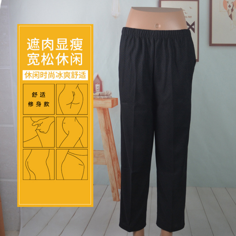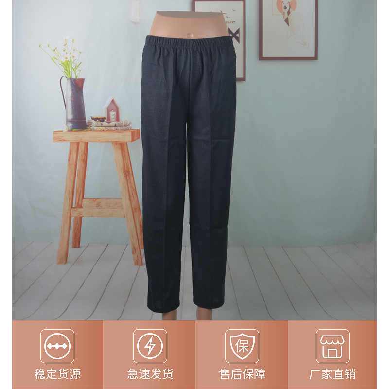 중년 및 노인을위한 린넨 바지 신축성 허리 엄마의 여름 발목 길이 바지 느슨한 시어머니 여름 바지