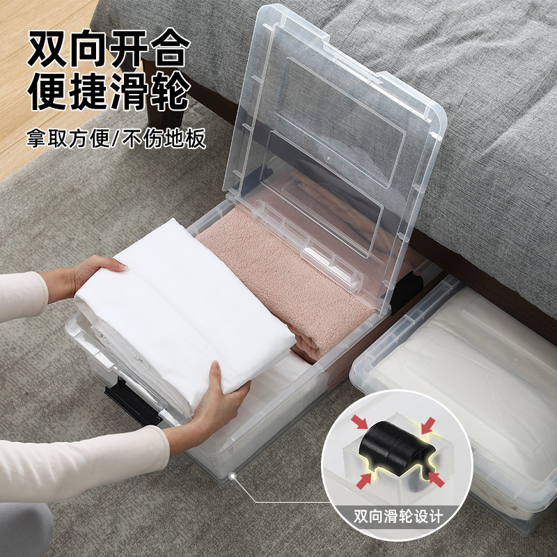 Younai 투명 침대 바닥 보관 상자 바퀴가 달린 플라스틱 초대형 보관 상자 가정용 두꺼운 옷 및 이불 보관 상자