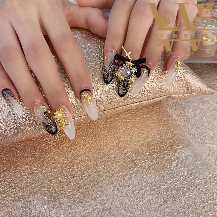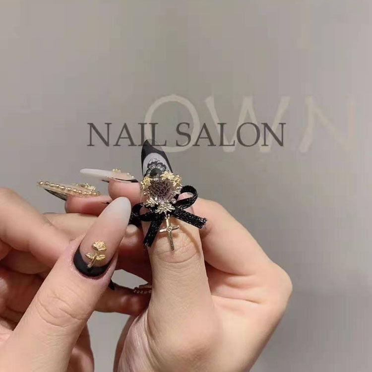 그물 빨간 손톱 보석 일본 장미 합금 다이아몬드 동전 잎 복고풍 금과 실버 조커 손톱 보석 도매