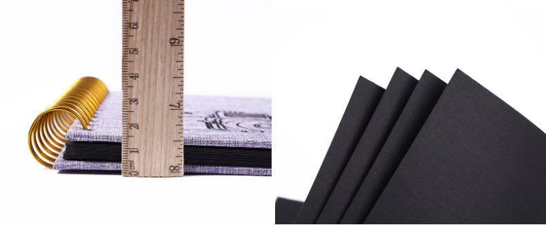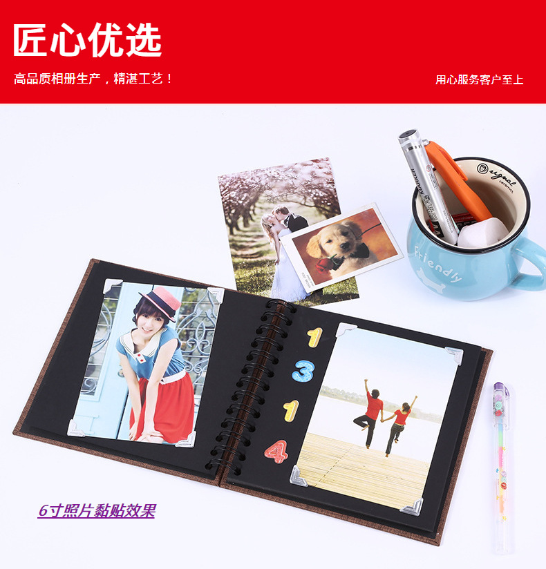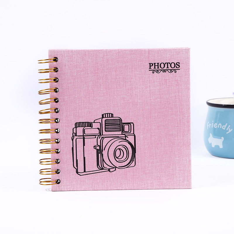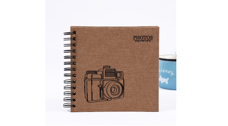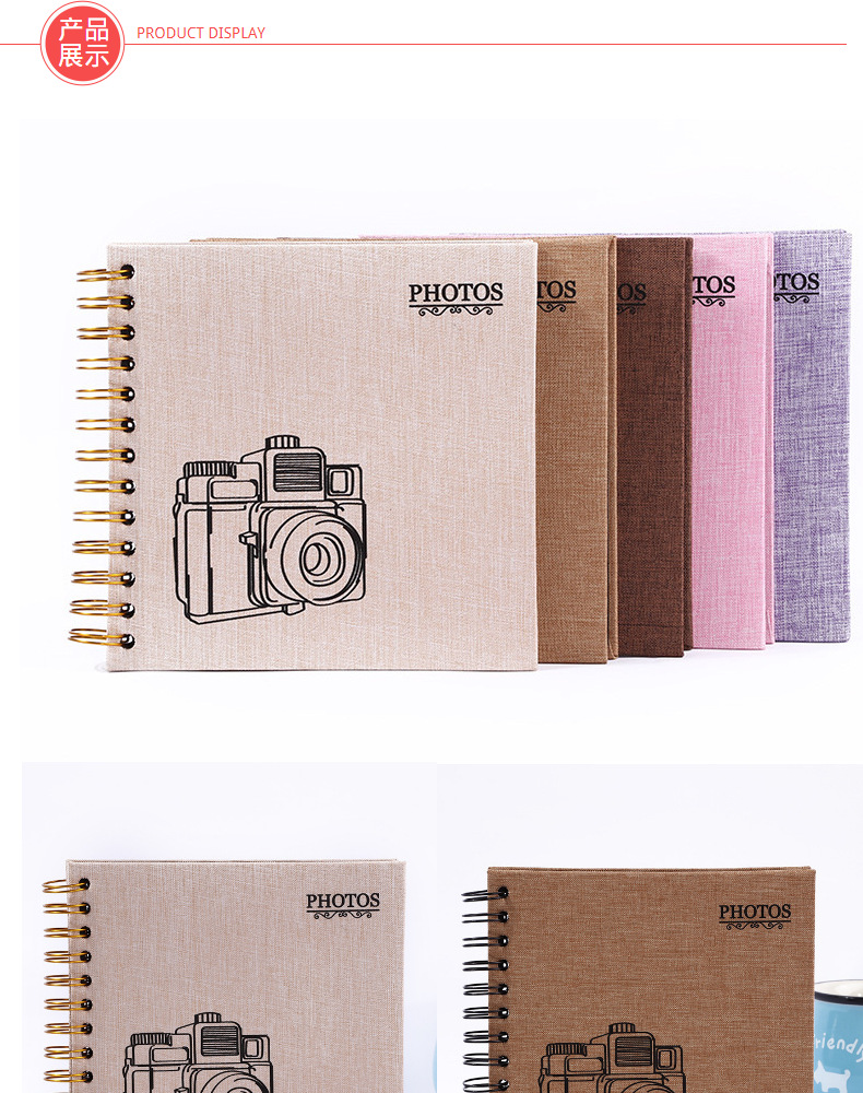 6 인치 고급 린넨 표면 검은 판지 사진 앨범 실크 스크린 패턴 DIY 수제 사진 앨범 어린이 성장 기록부 앨범