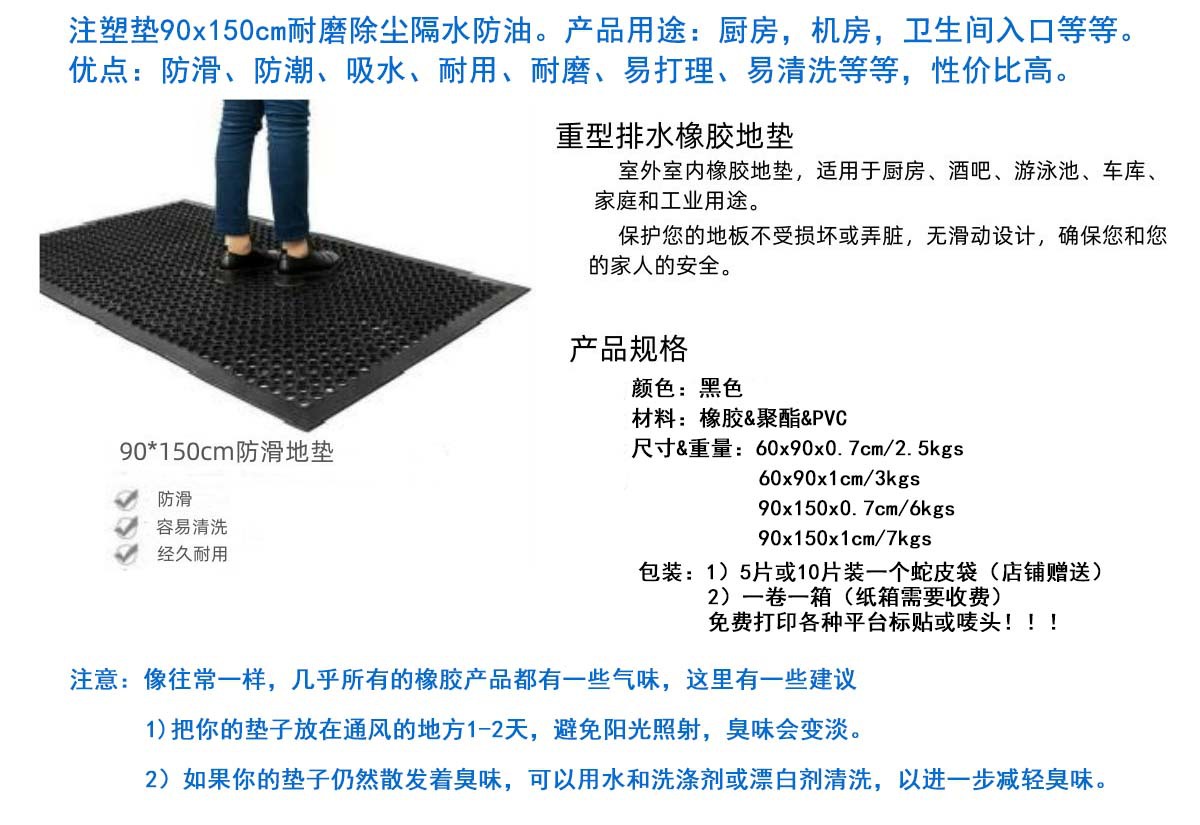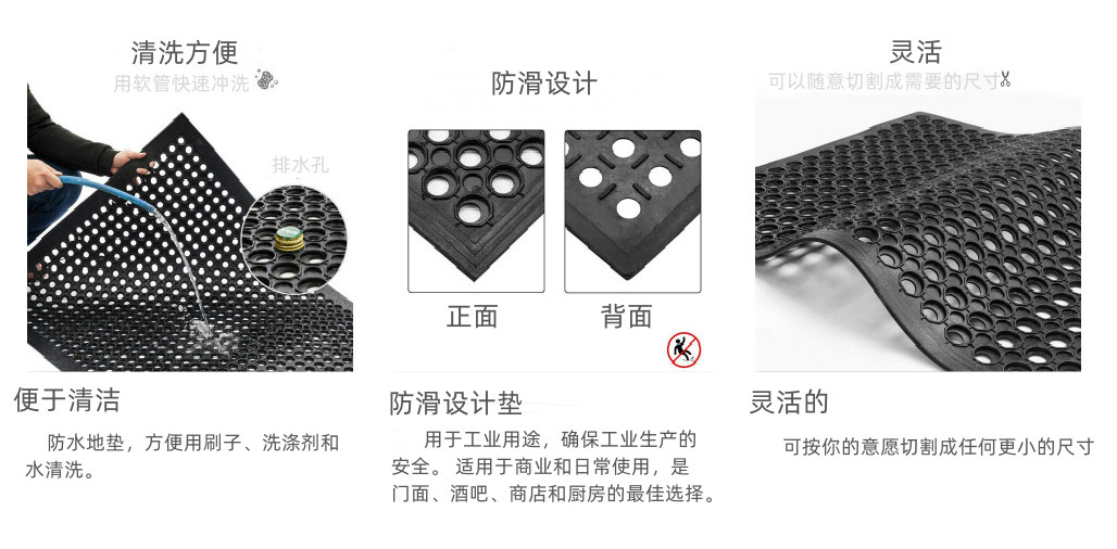 고무 미끄럼 방지 피로 방지 바닥 매트, 주방, 산업 작업장용, 발수성, 중공 구멍이 있는 고무 매트, 제조업체 도매