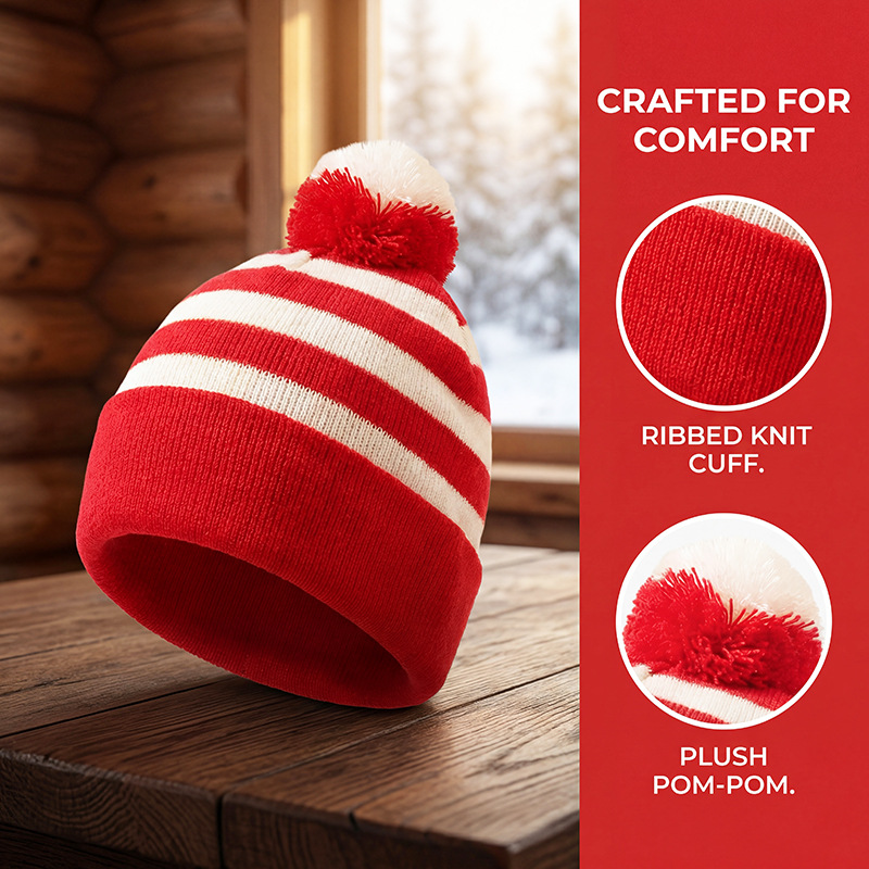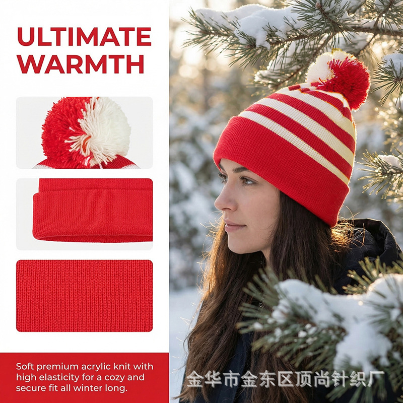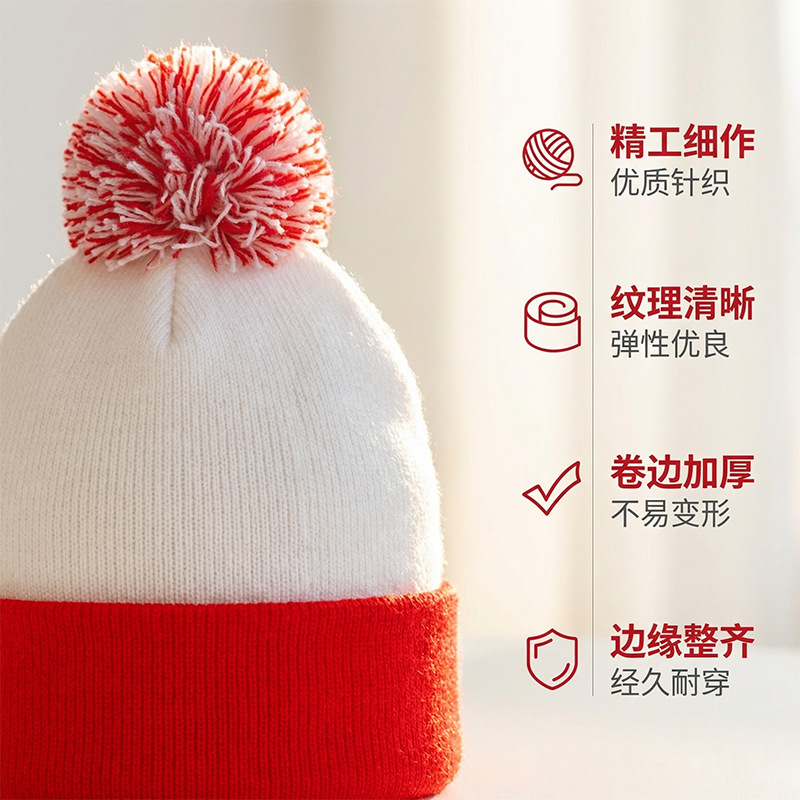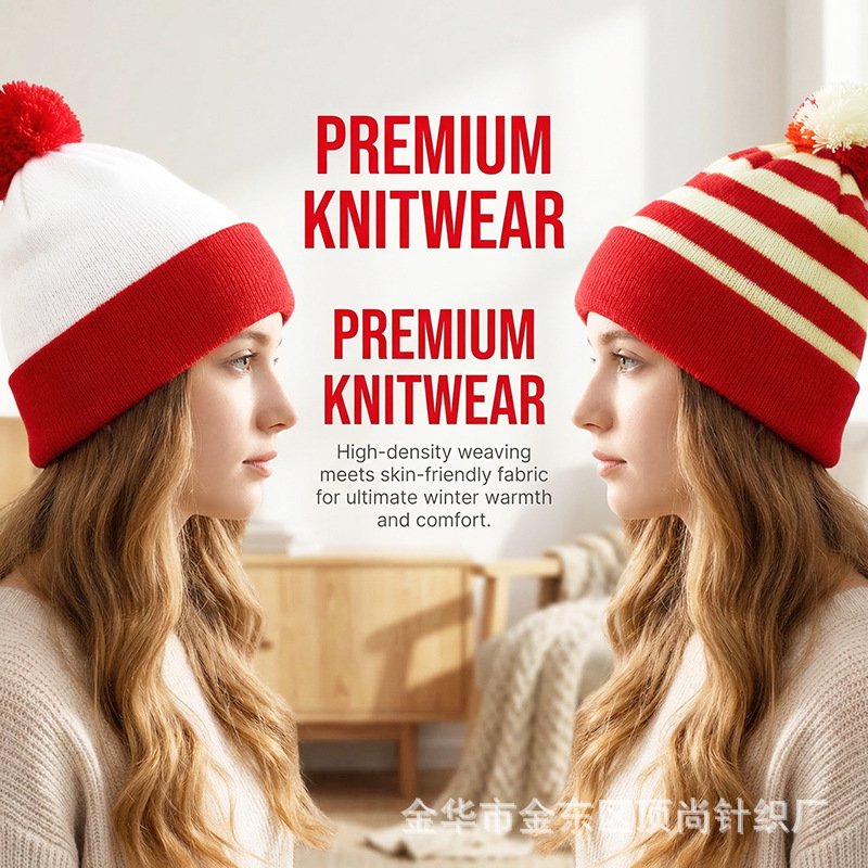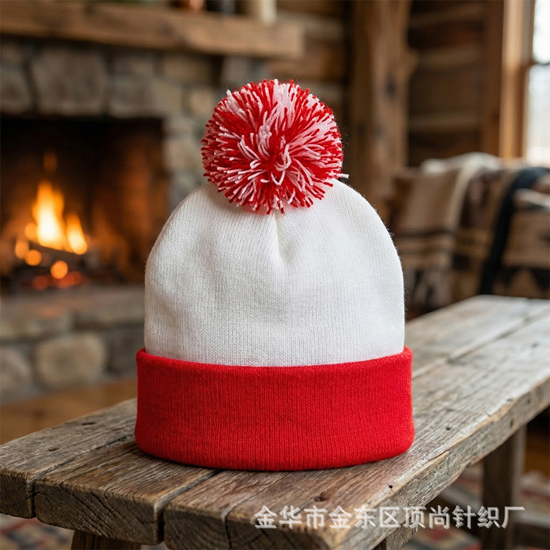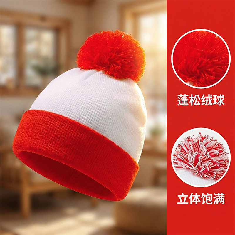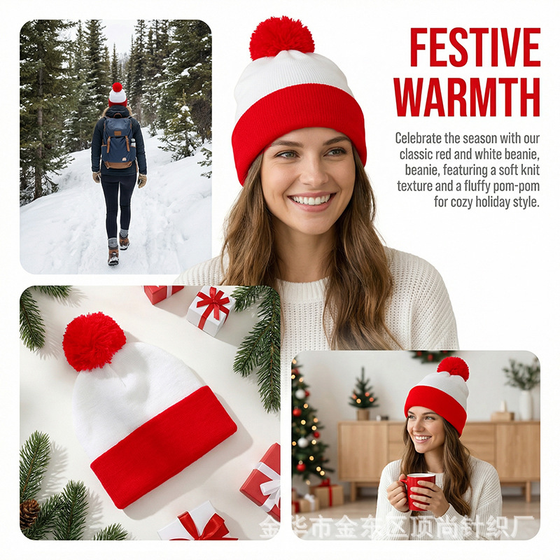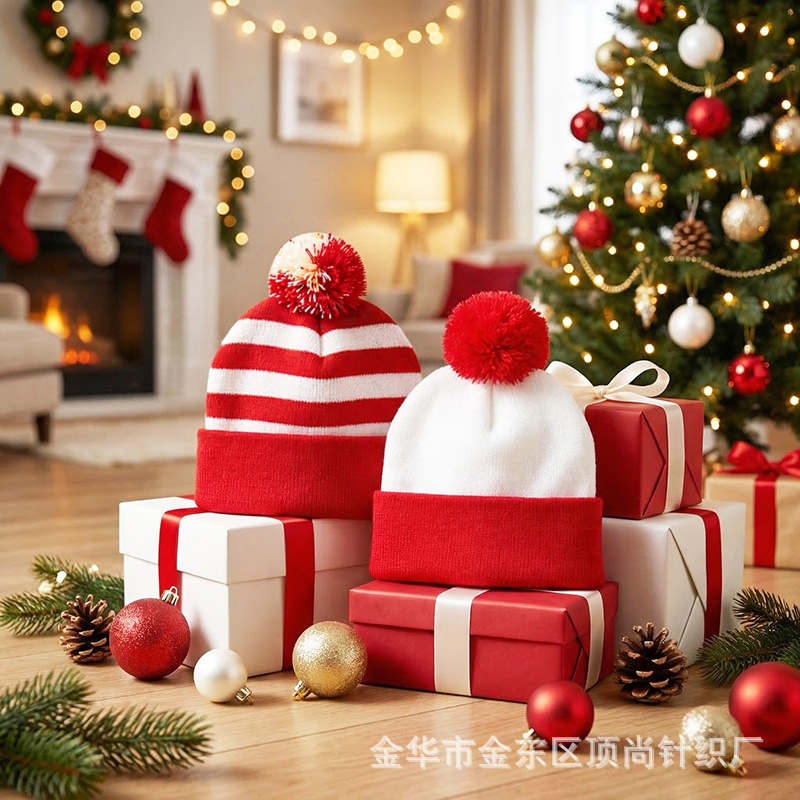 크리스마스 모자, 할로윈 니트 모자, 빨간색과 흰색의 배색 모자, 모직 모자 등을 장식한 니트 모자, 국경을 넘는 특별 공급 상품, 재고 있음