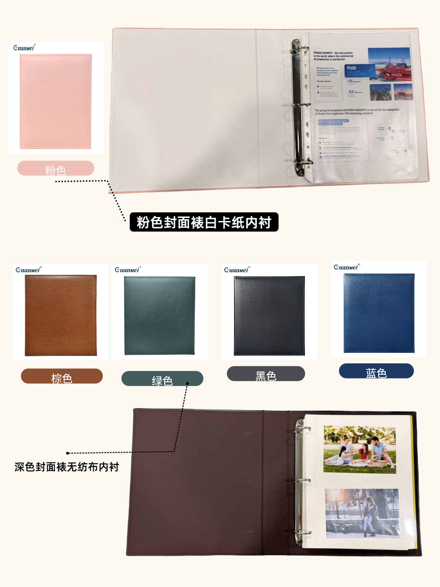 광메이 공장 도매 PU 가죽 A4 파일 폴더, 상장 보관용 폴더, 3공 바인더, 비즈니스 선물