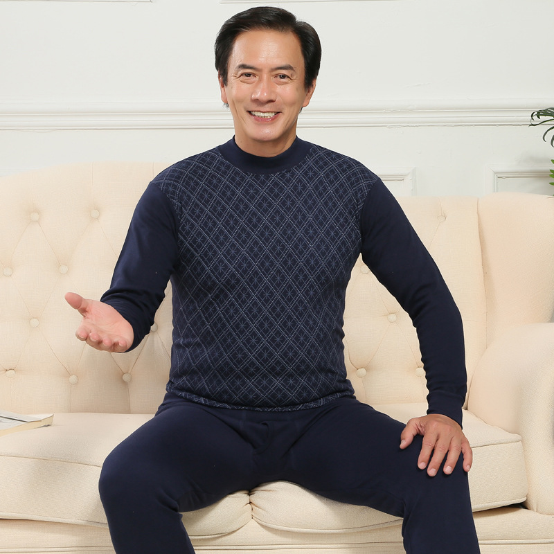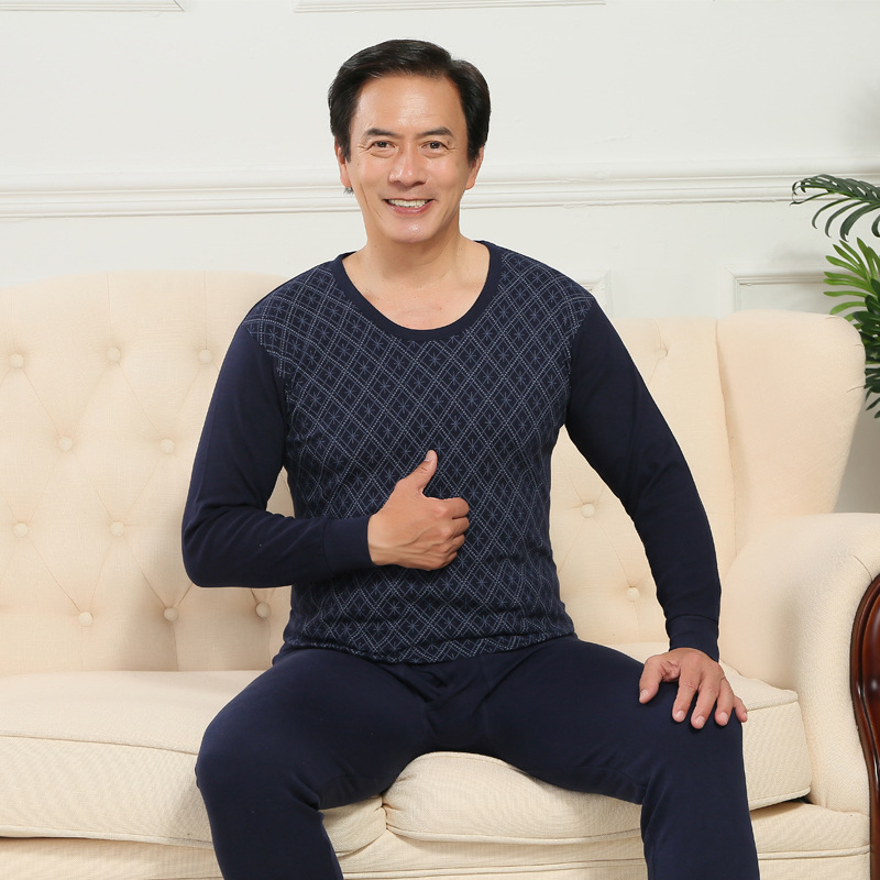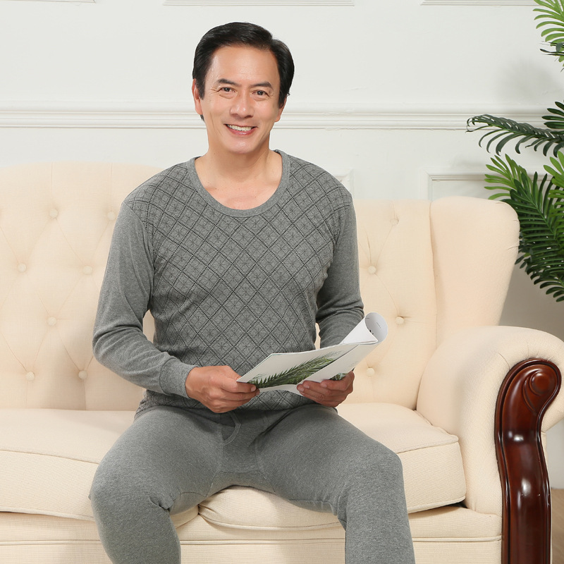 Xunyuan 남성 인쇄 속옷 가을 바지 세트 중년과 노인 가을 의류 기본 속옷 머리카락의 세대