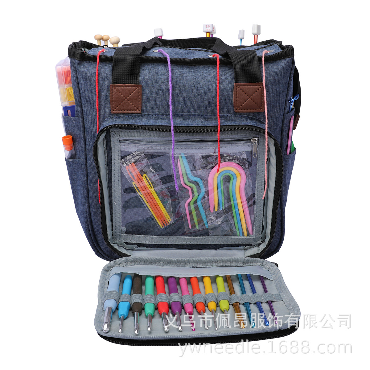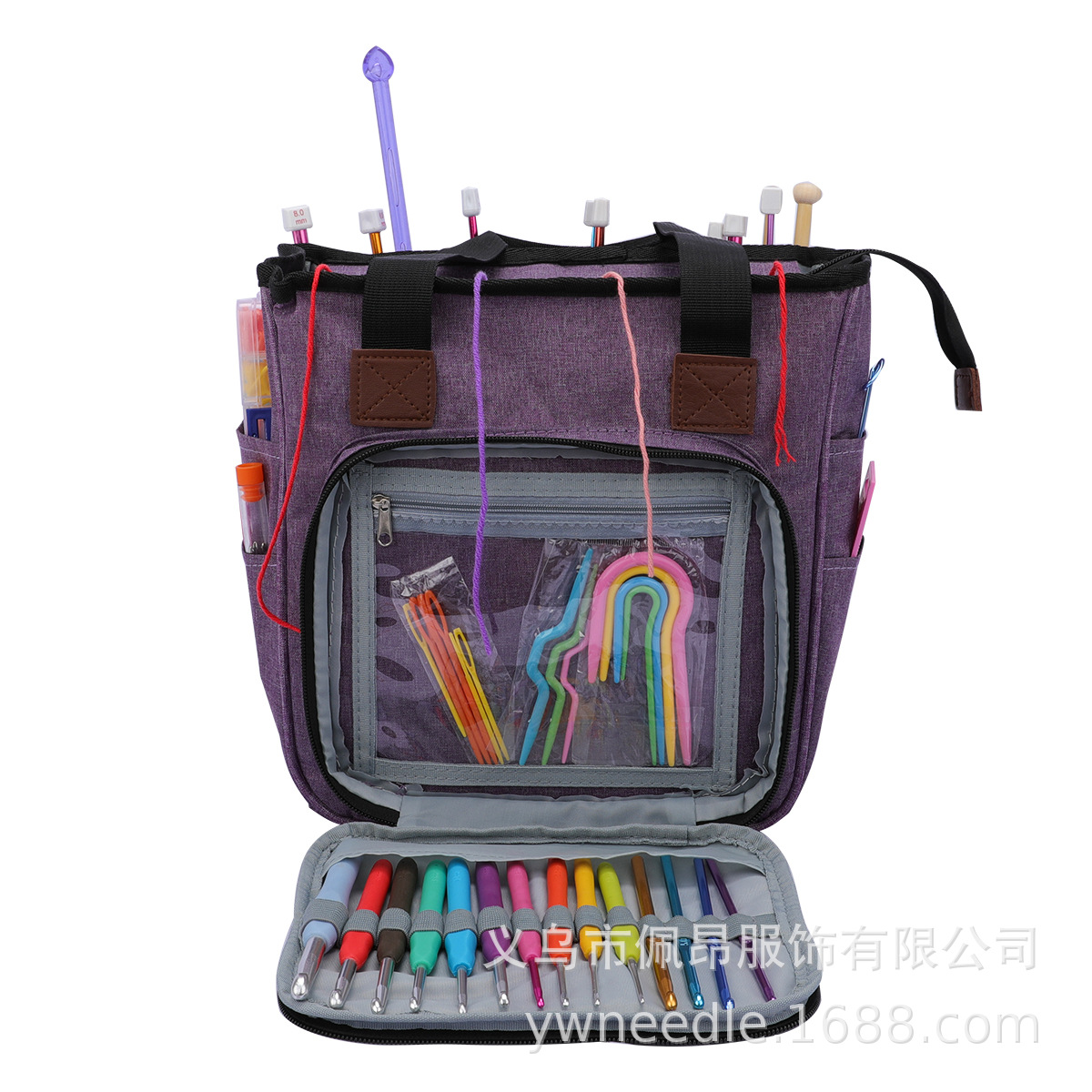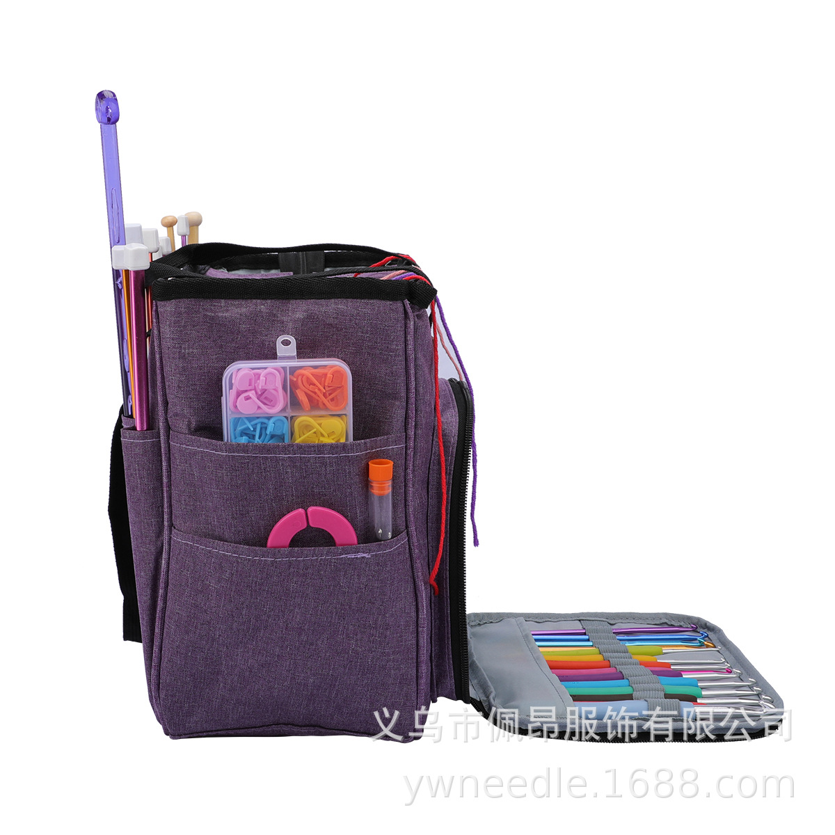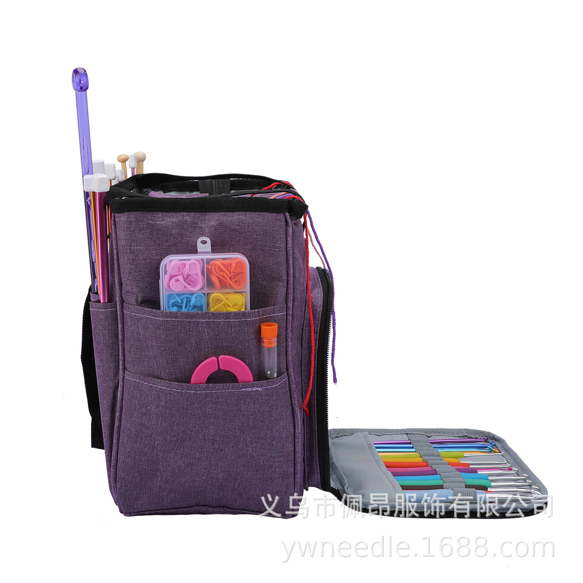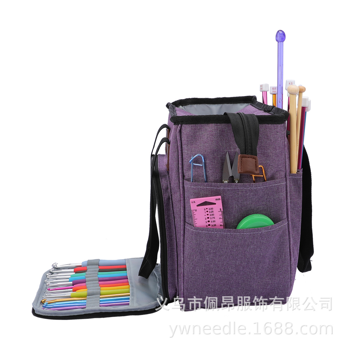 국경 간 인기 판매 가정용 짠 보관 도구 보라색 옥스포드 천 핸드백 스틱 바늘 보관 울 보관 가방