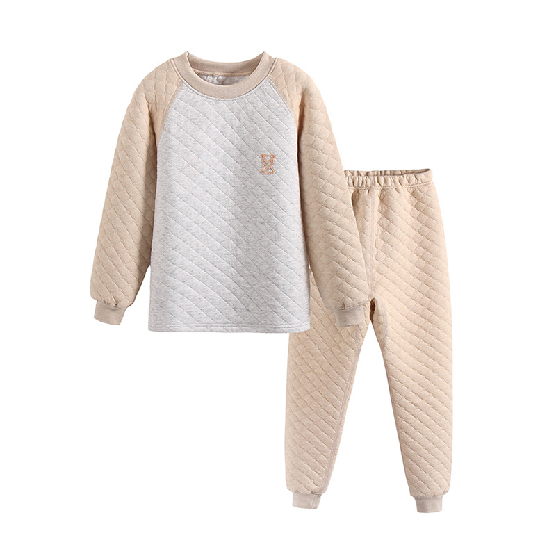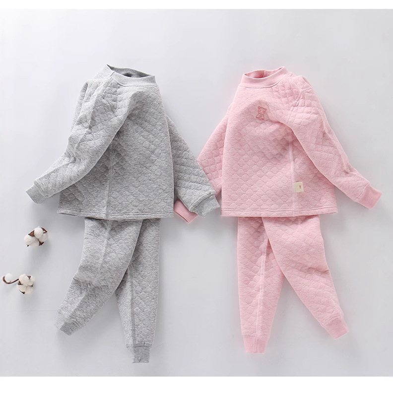 아이의 따뜻한 면 속옷 세트 소년의 다채로운 면 가을 옷과 바지 여아 두꺼운 기본 중형 및 큰 어린이 3 층 면