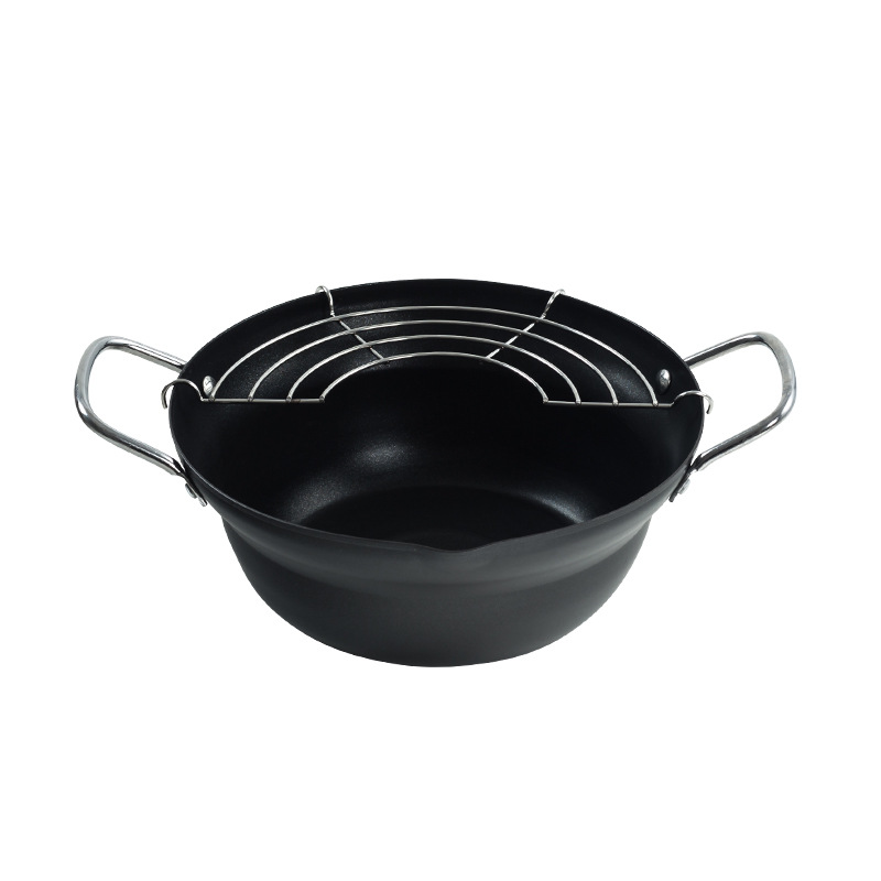 小油炸锅有不锈钢本色和外层喷漆可以选择的,20和24两个规格的,都可以搭配加盖子