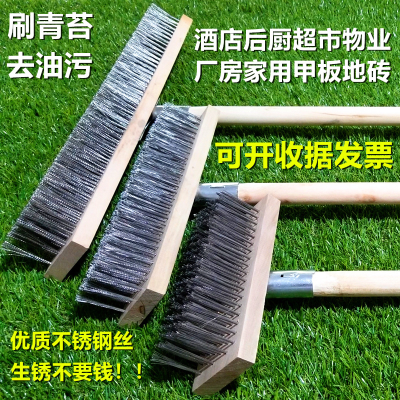 긴 손잡이 스테인레스 스틸 와이어 스크러버 타일 수영장 주방 바닥 청소 브러시 녹 오일 모스 하드 브러시