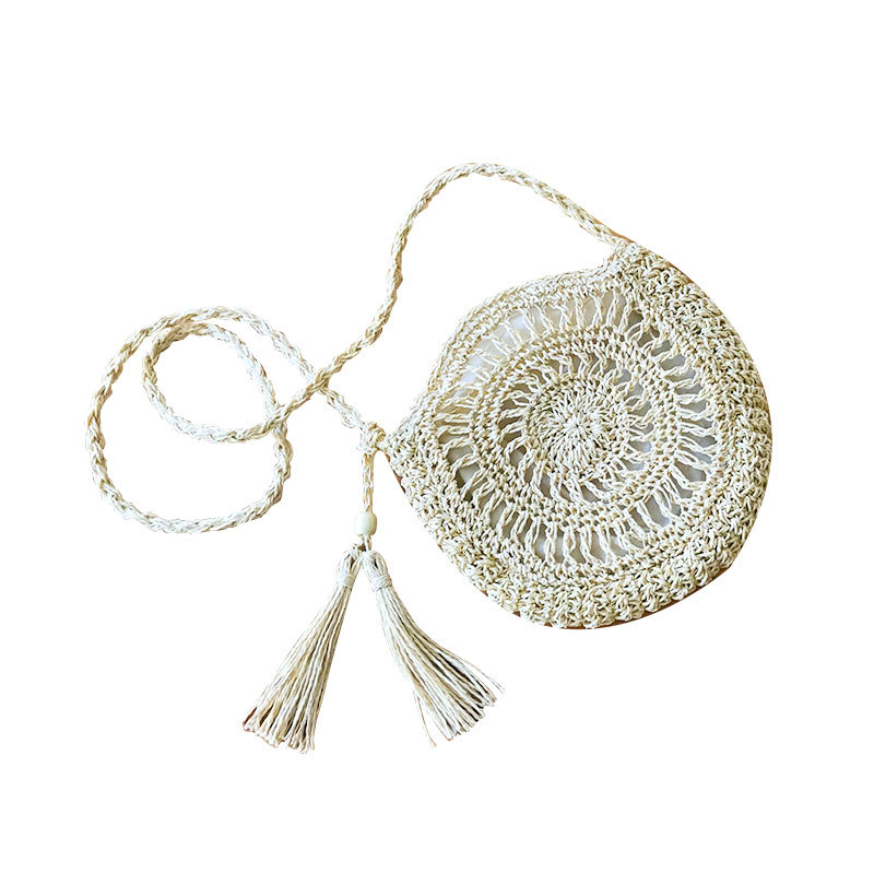 수제 종이 로프 짠 라운드 술 크로스 바디 짠 가방 수제 크로 셰 뜨개질 밀짚 짠 가방 여성 가방 비치 가방 태국