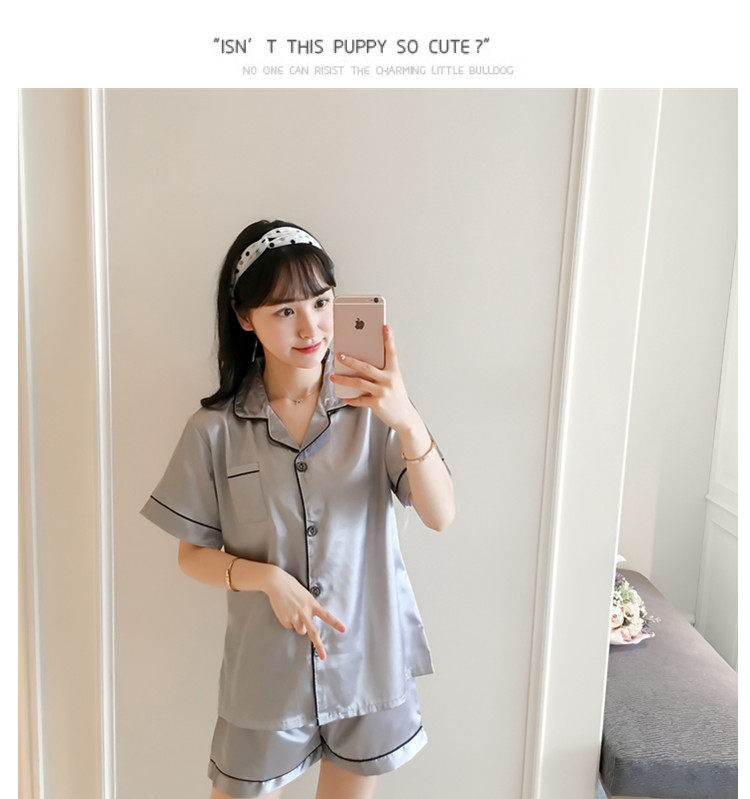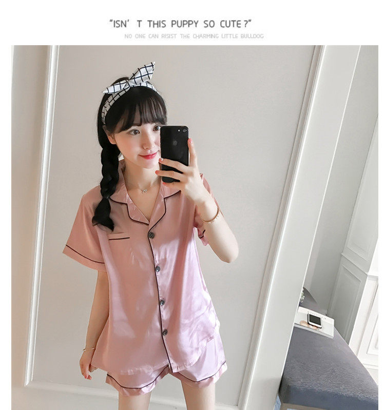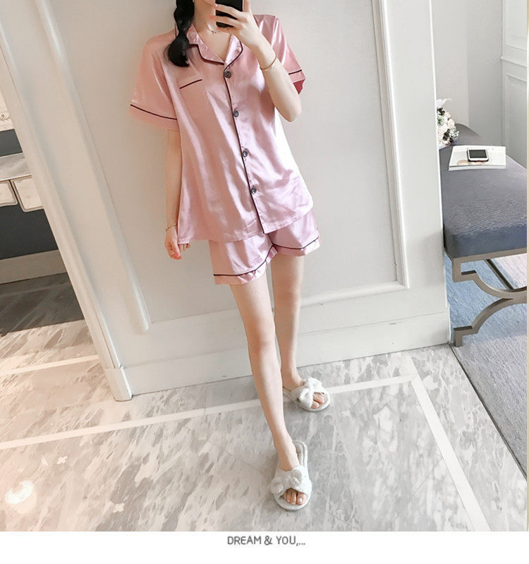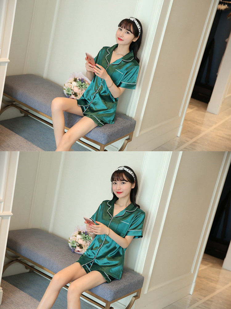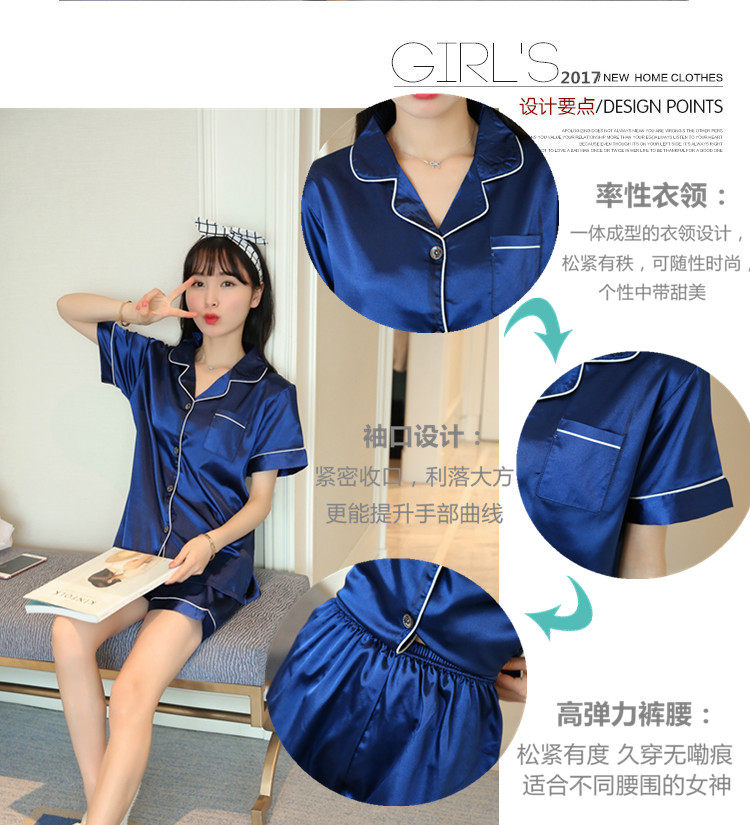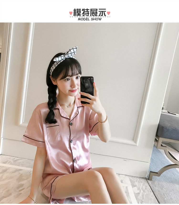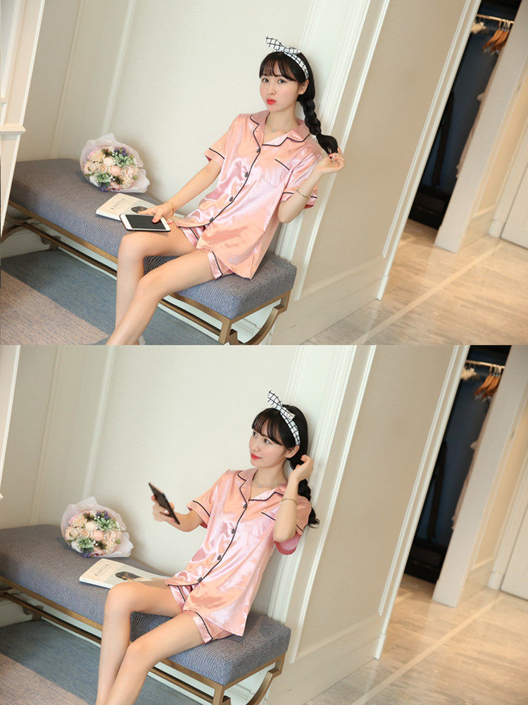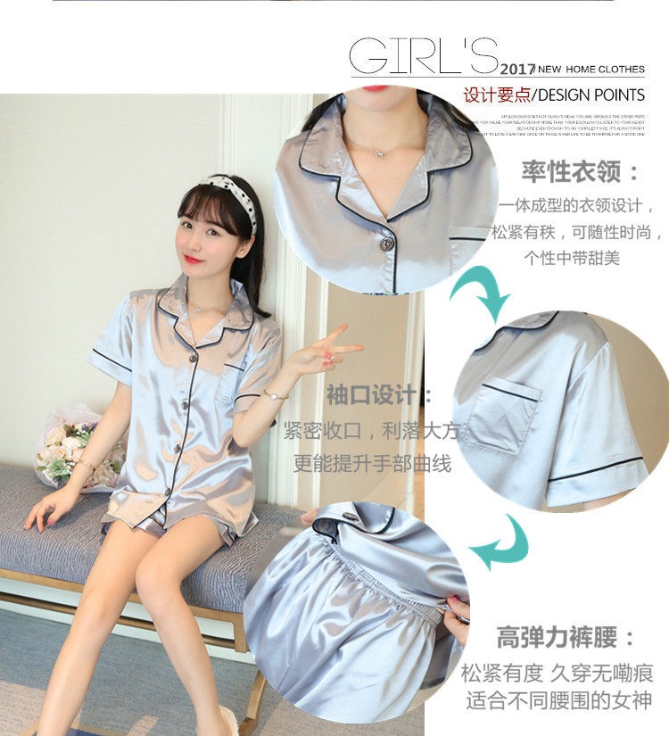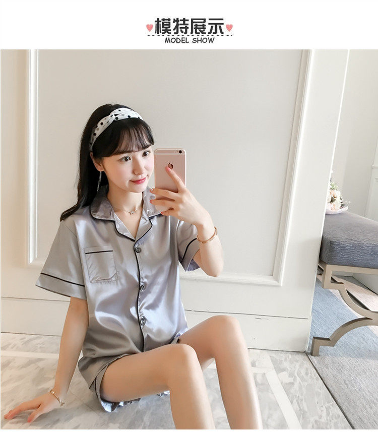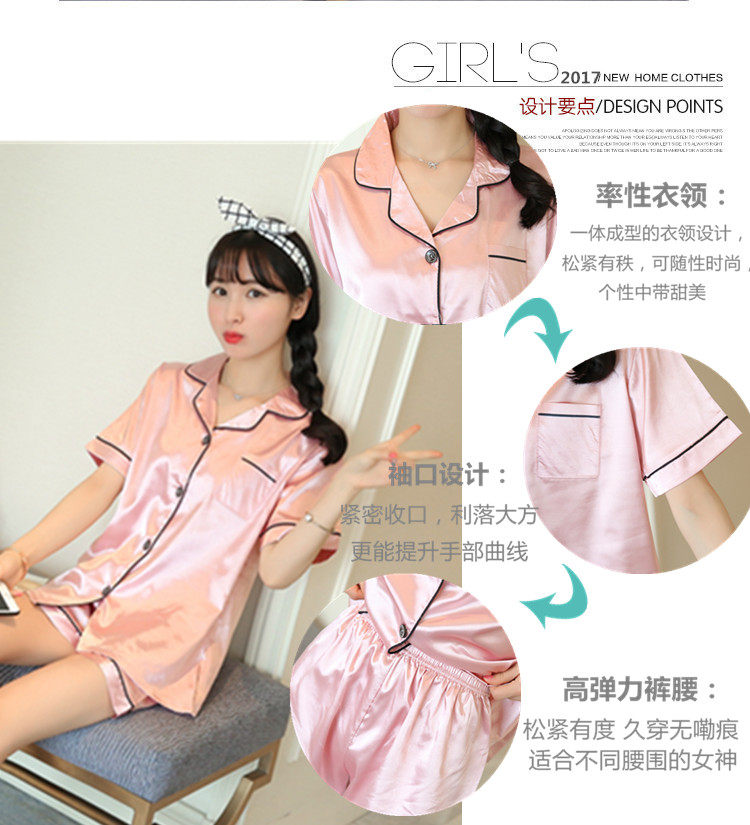 잠옷 세트 여자의 여름 얼음 실크 반팔 얇은 느슨한 플러스 사이즈 통통녀 실크 모조 가정 옷 투피스 세트
