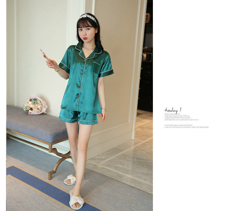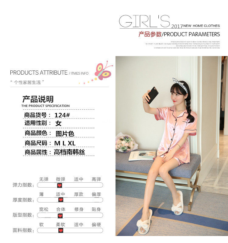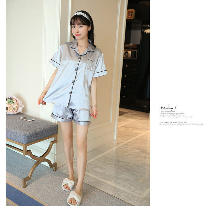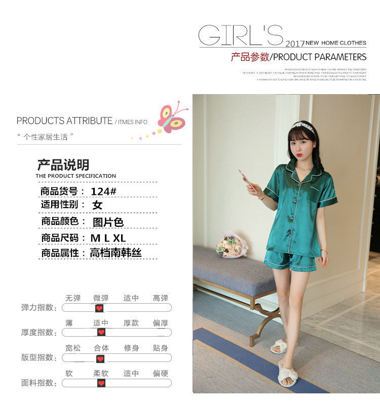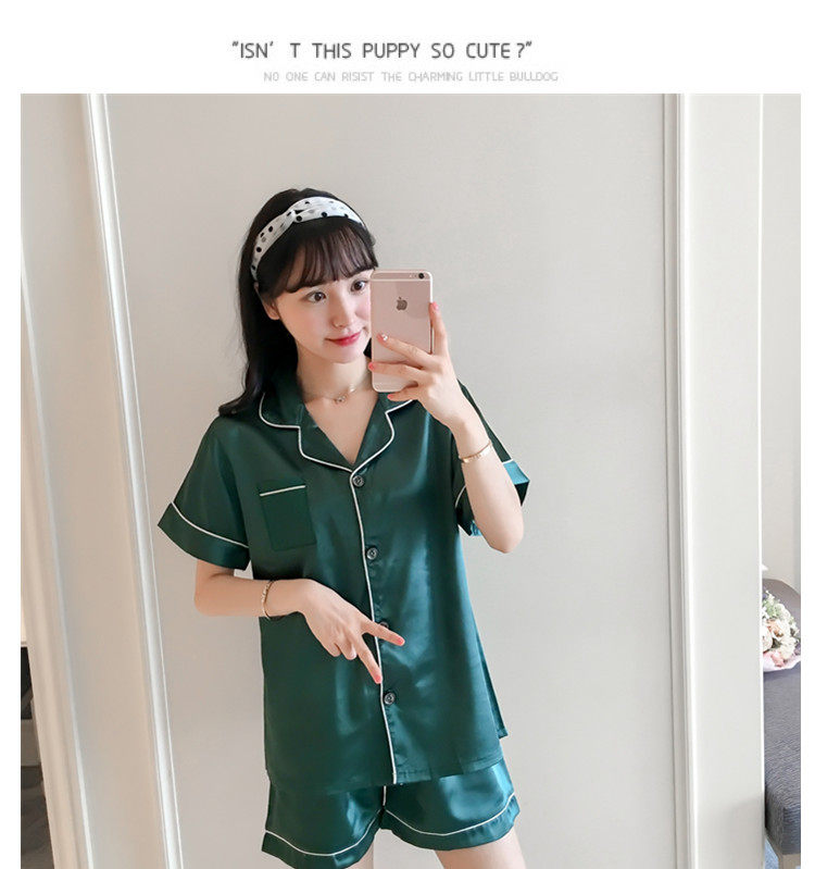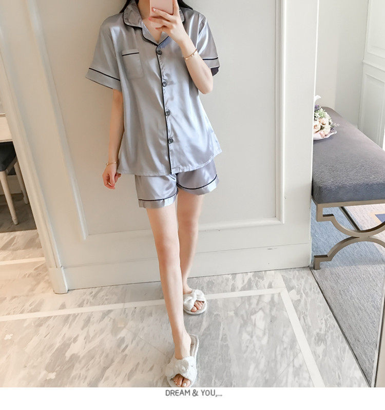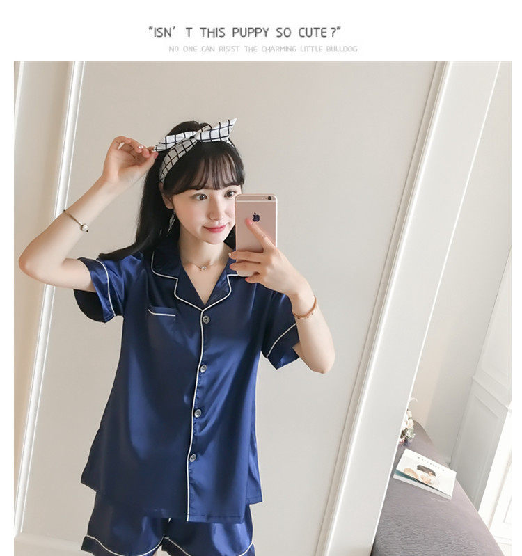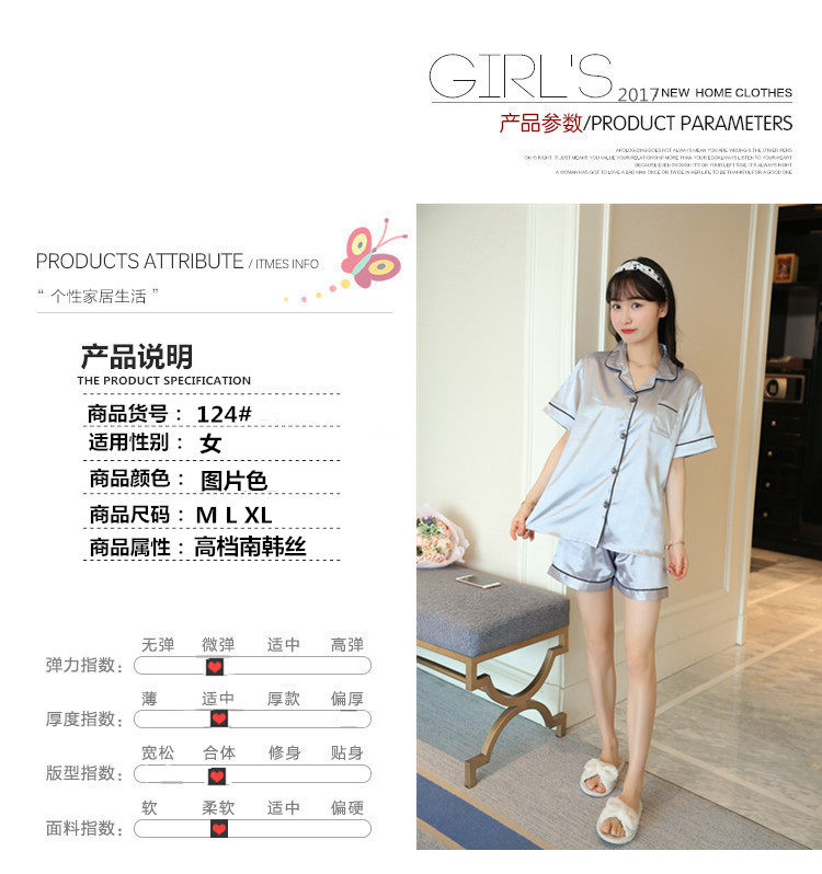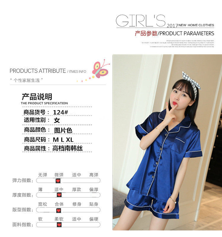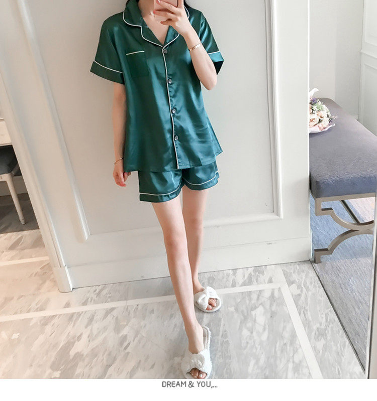 잠옷 세트 여자의 여름 얼음 실크 반팔 얇은 느슨한 플러스 사이즈 통통녀 실크 모조 가정 옷 투피스 세트