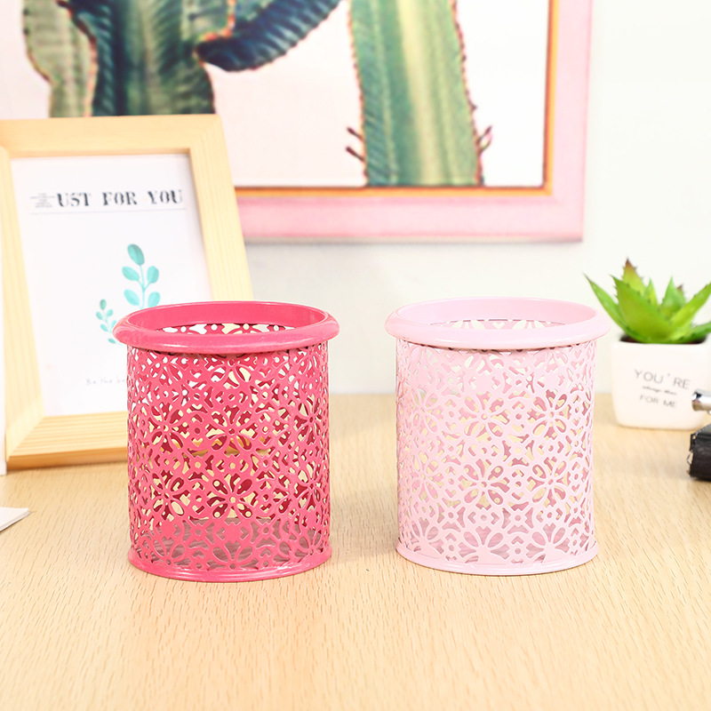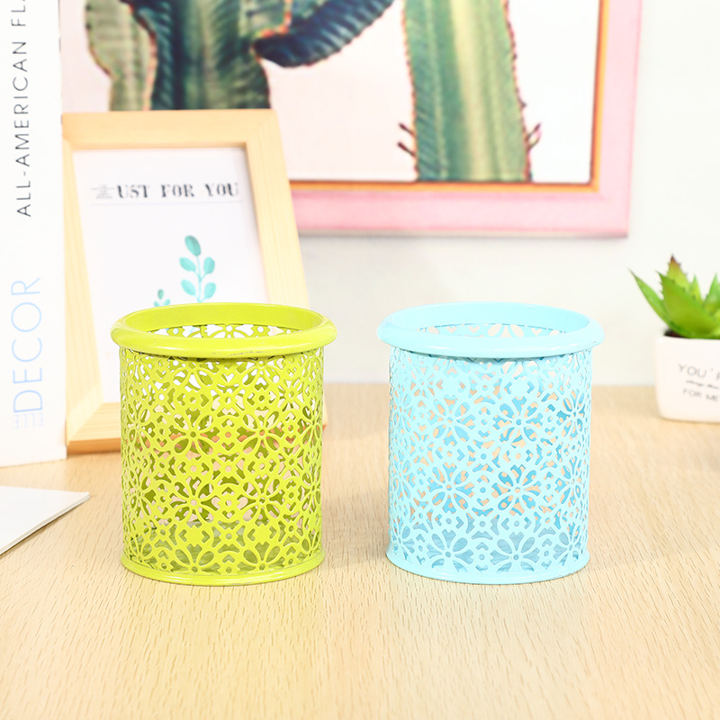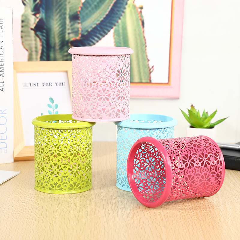 크리 에이 티브 사무용 학생 용품 라운드 철 펜 용기 다기능 해바라기 중공 데스크탑 보관 펜 용기