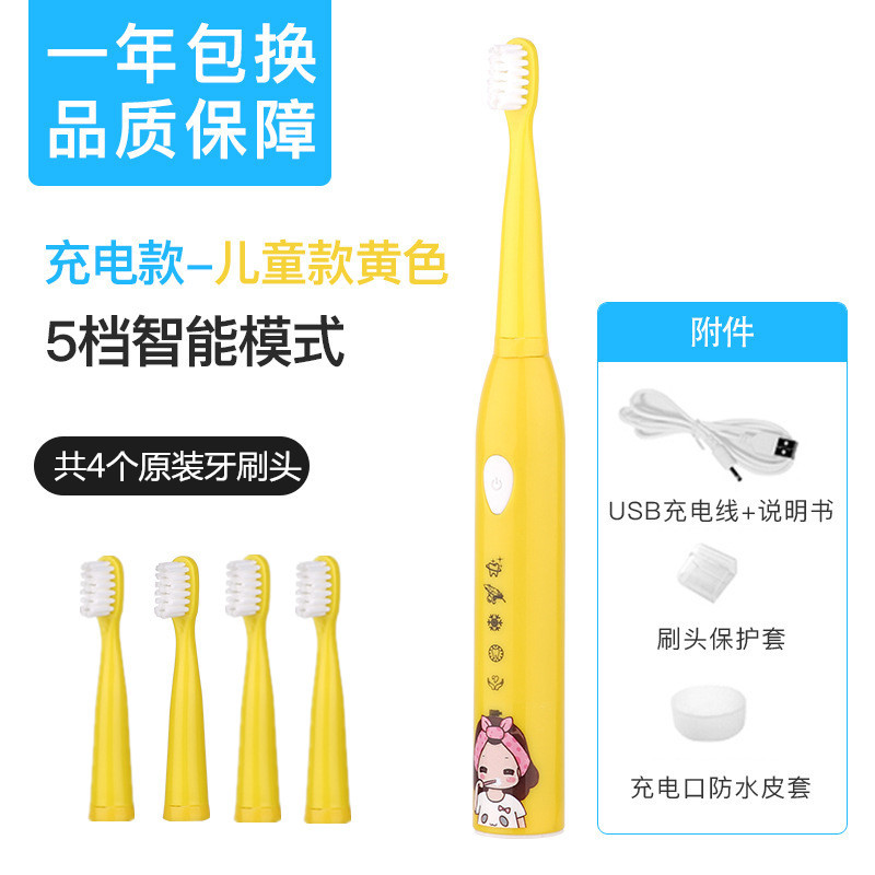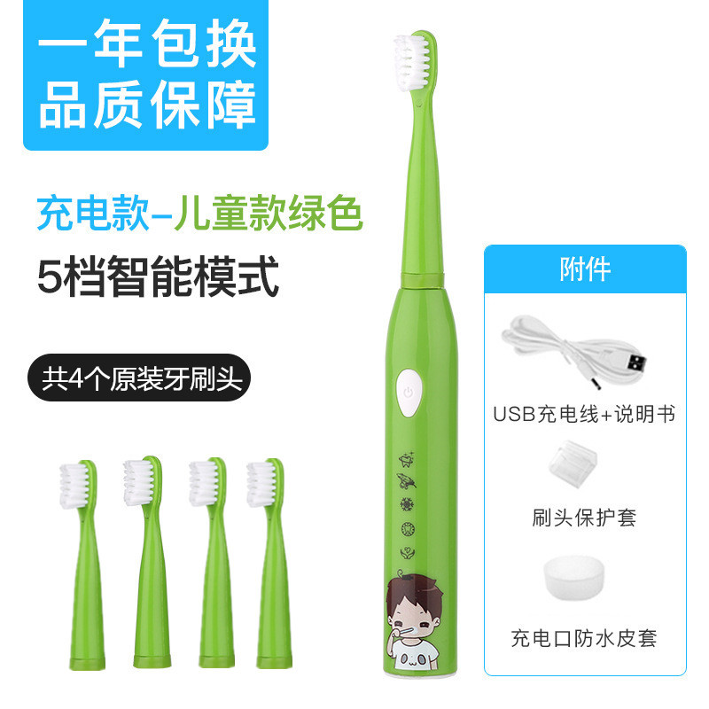 소년과 소녀를위한 만화 충전식 어린이 칫솔 전기 방수 5 단 진동 부드러운 머리 칫솔