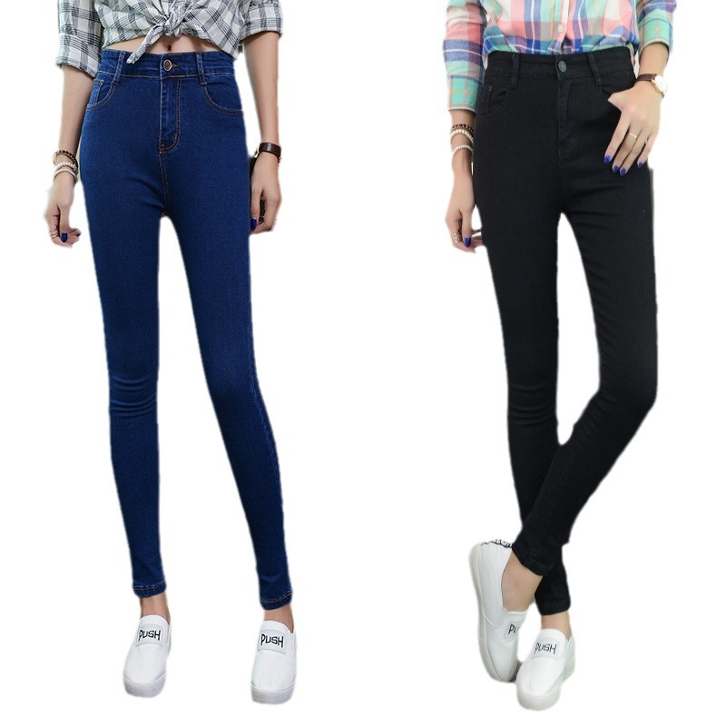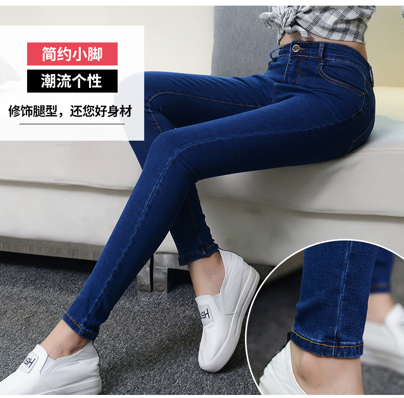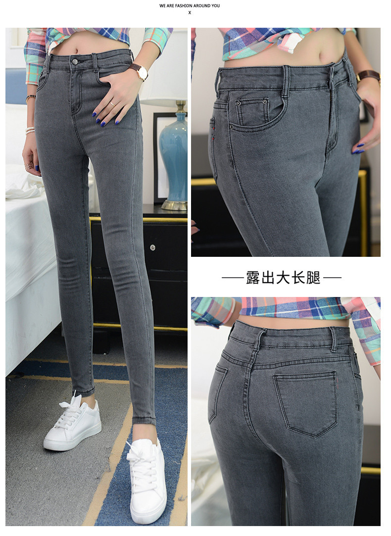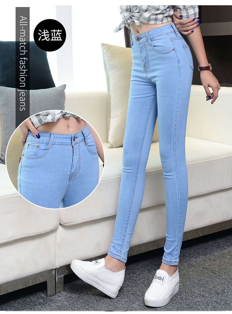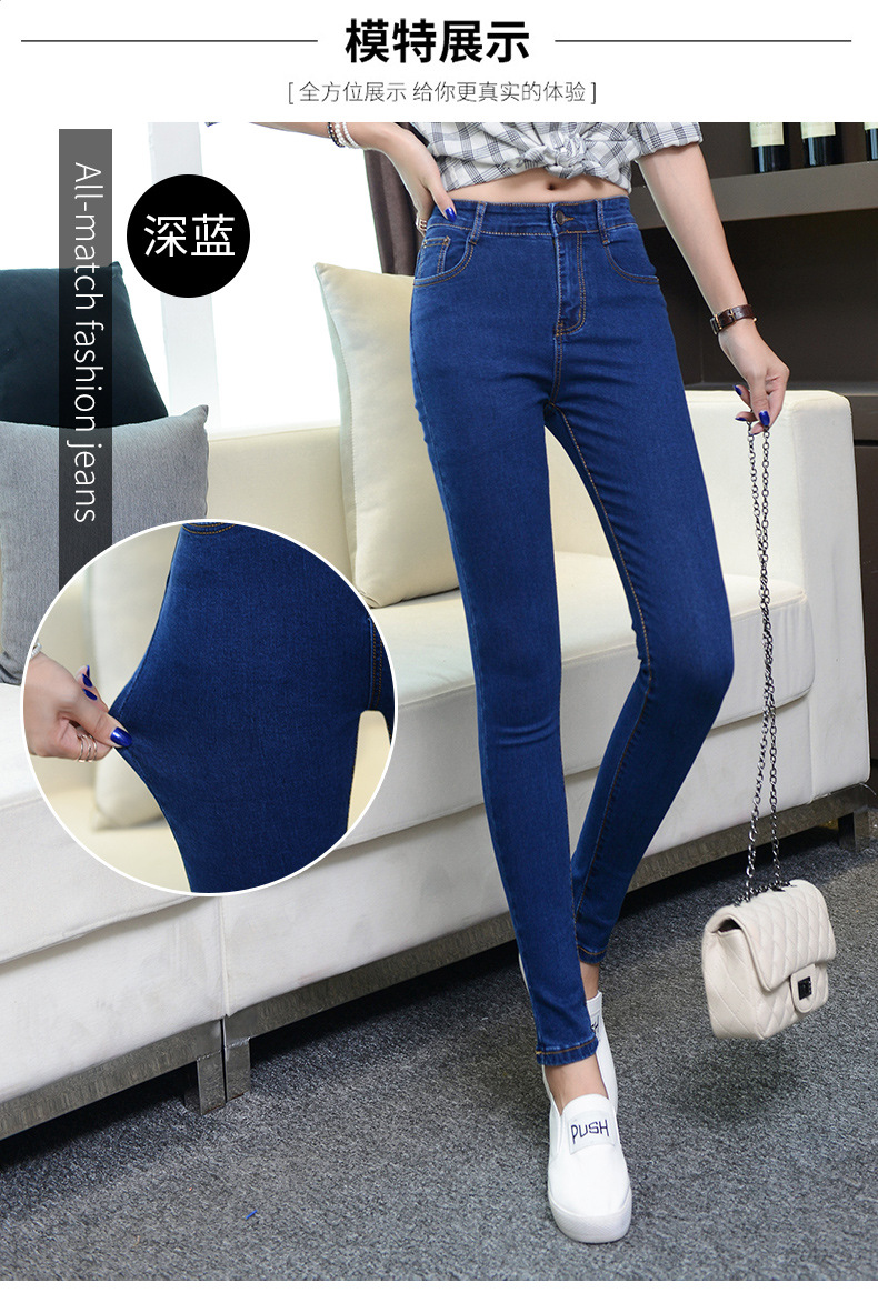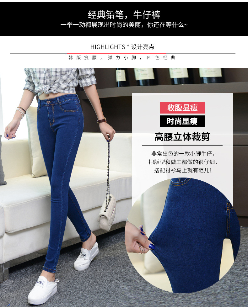 헤어 네트 레드 폭발의 세대 하이 웨이스트 패션의 한국어 버전 슬림 스키니 청바지 여성용 스트레치 롱 팬츠