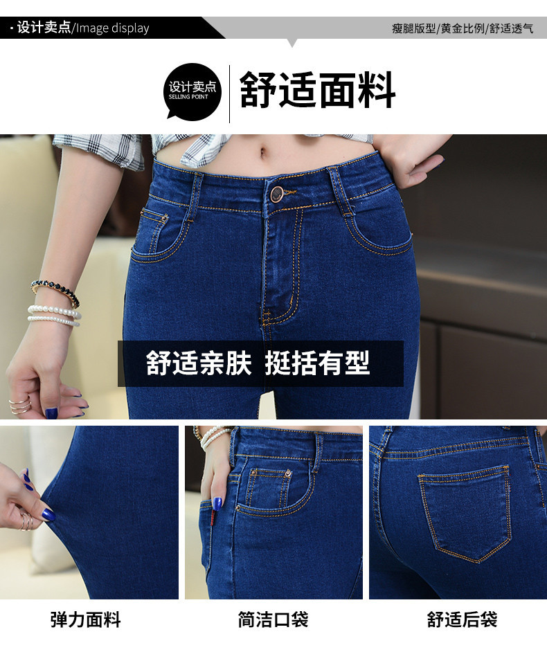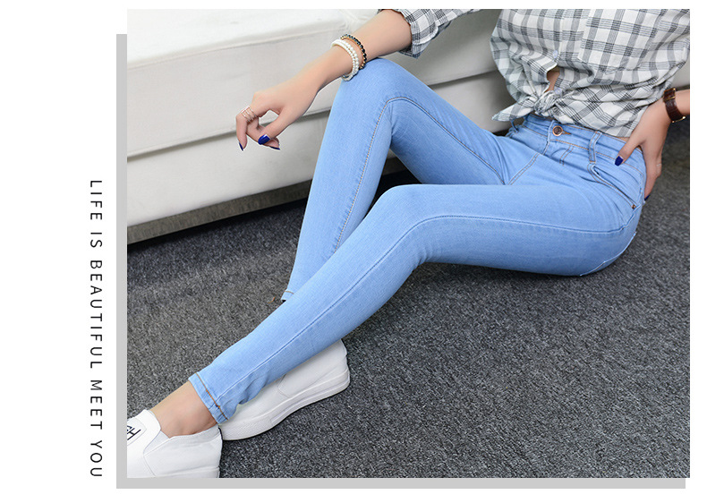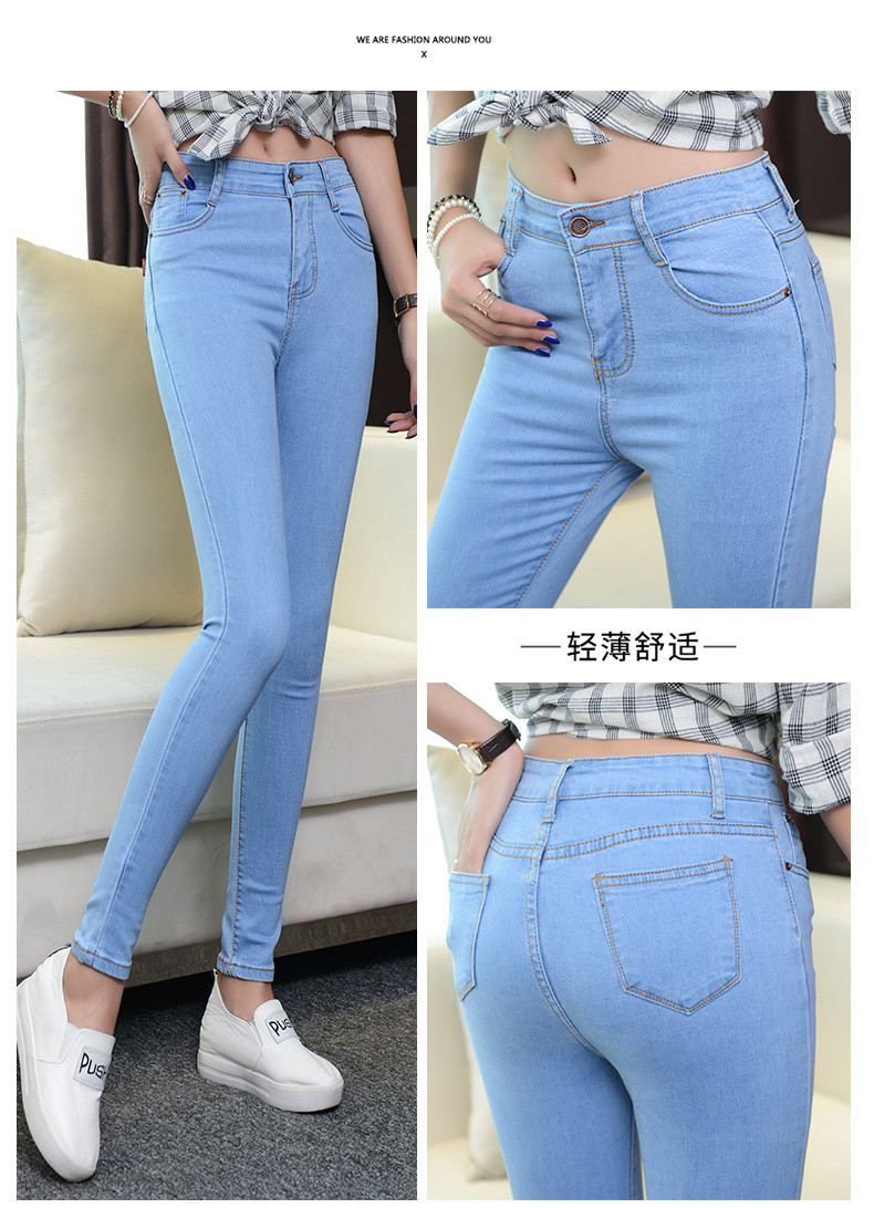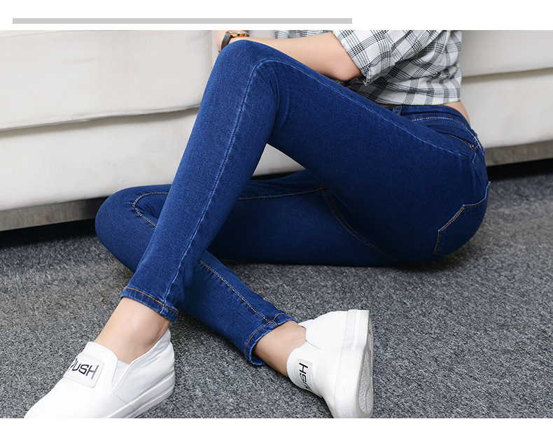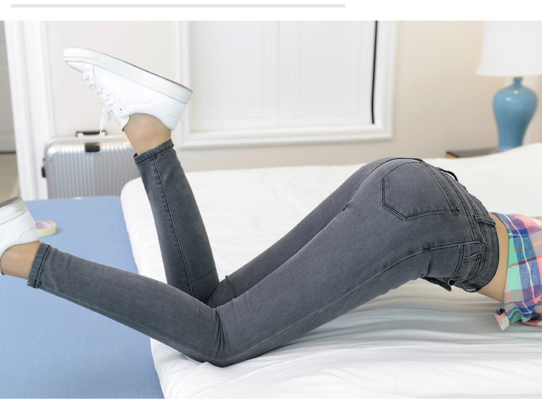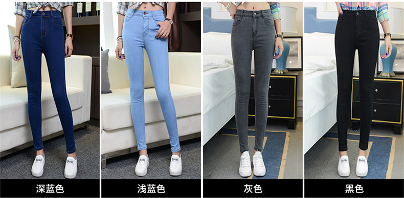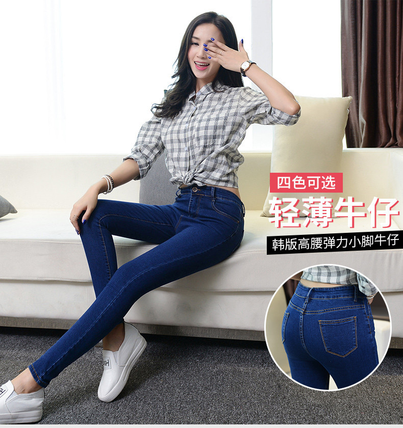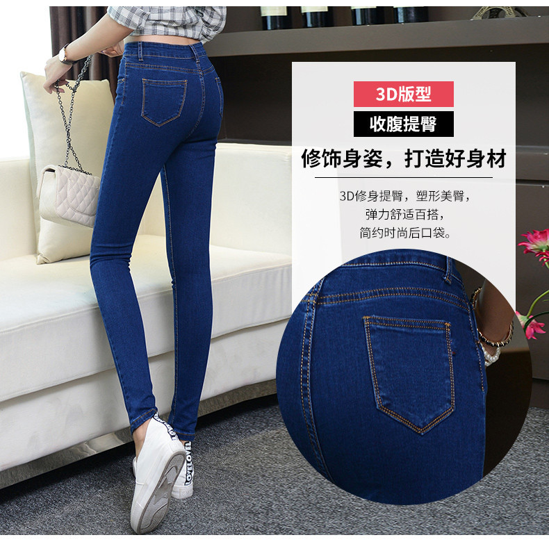헤어 네트 레드 폭발의 세대 하이 웨이스트 패션의 한국어 버전 슬림 스키니 청바지 여성용 스트레치 롱 팬츠